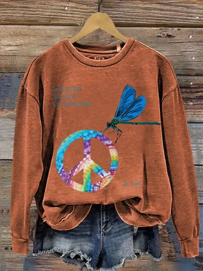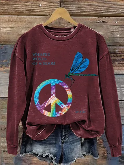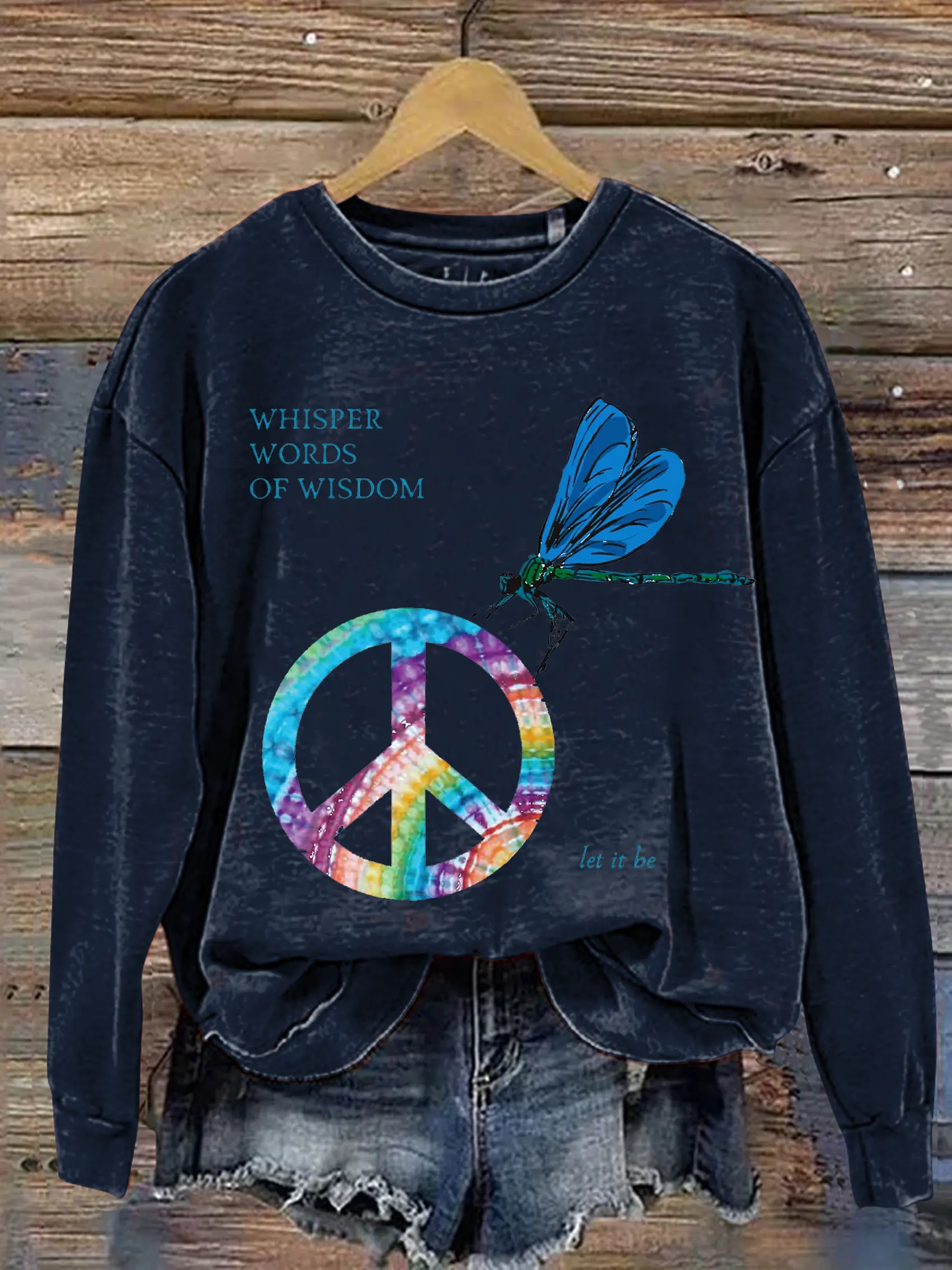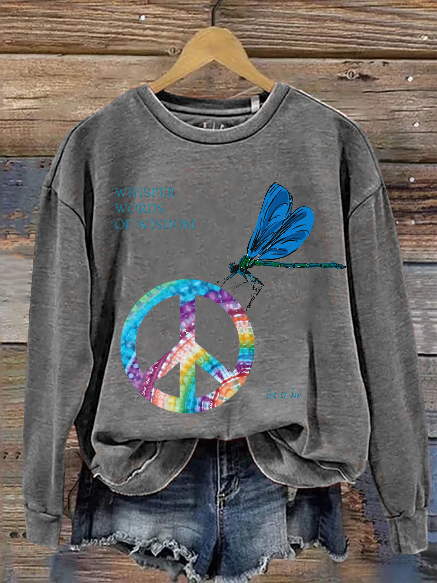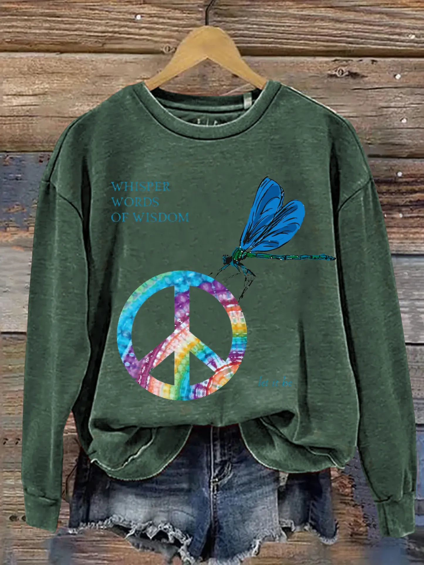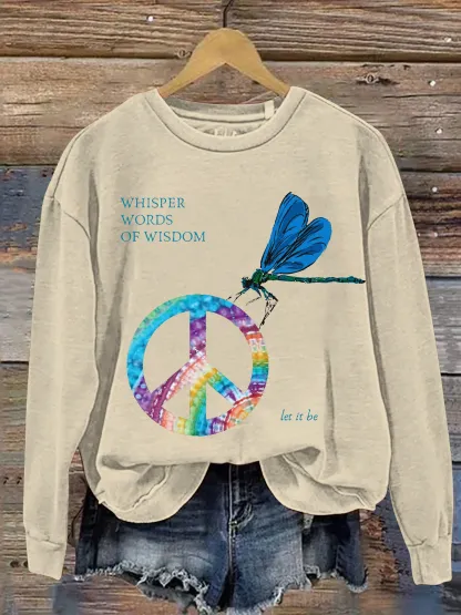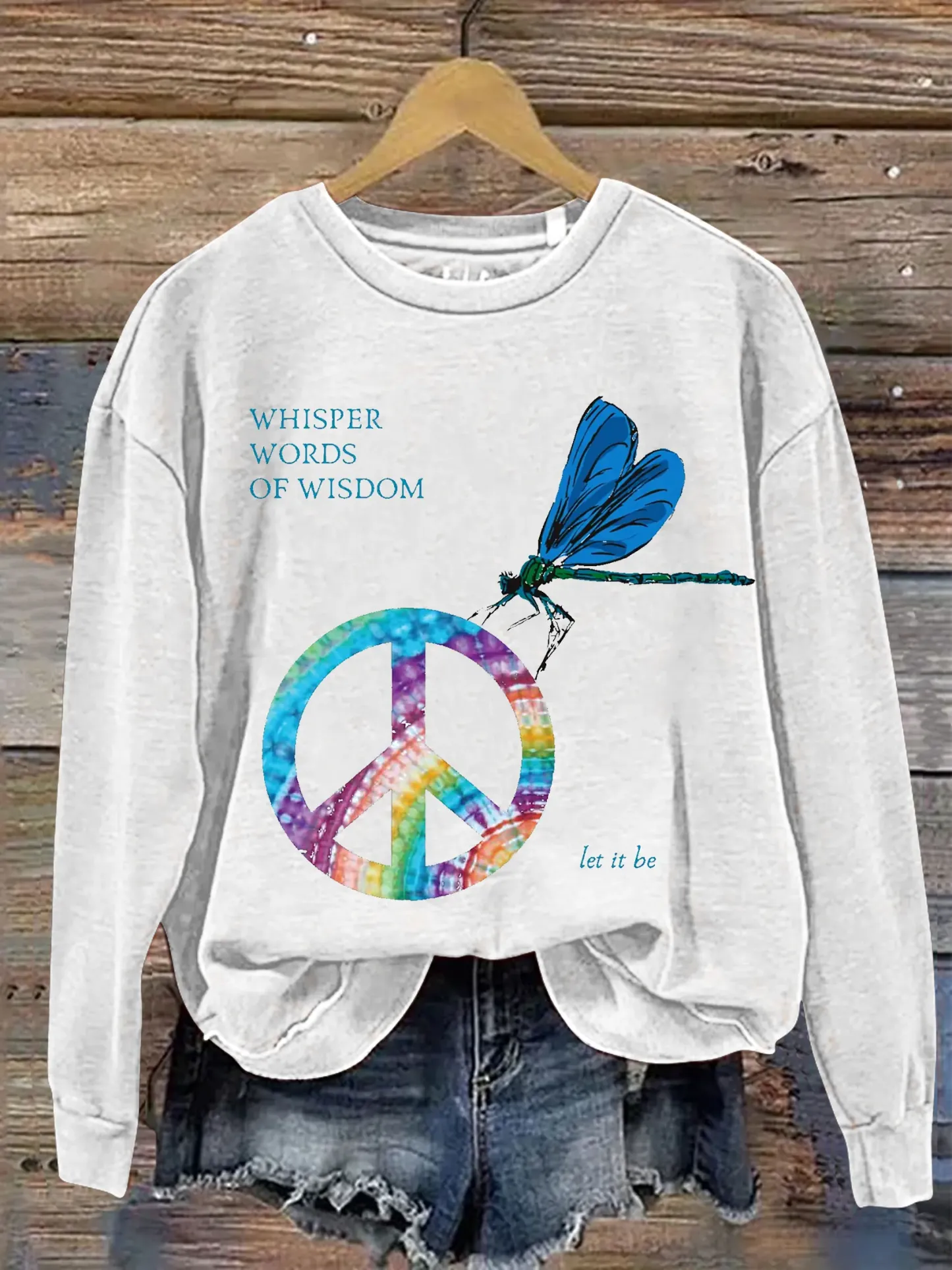 Whisper Words Of Wisdom Let It Be Dragonfly Peace Sign Print Casual Sweatshirt