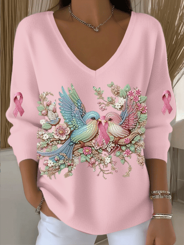 Women's Fall Breast Cancer Awareness Hummingbird V-Neck Top