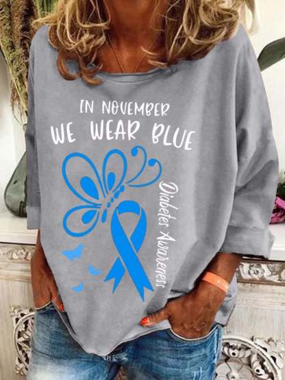 Women's In November We Wear Blue Diabetes Awareness Print Casual Sweatshirt