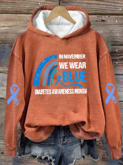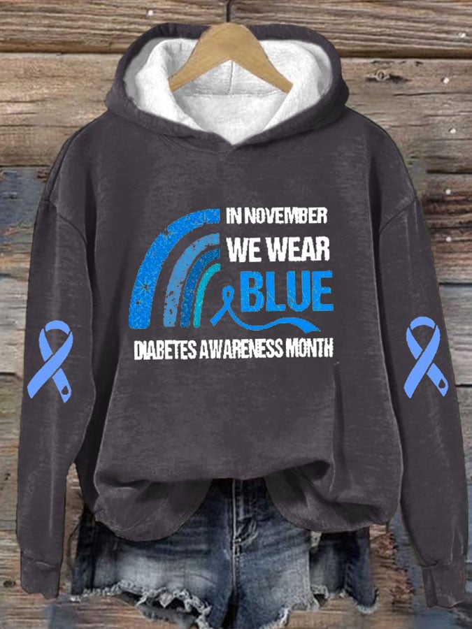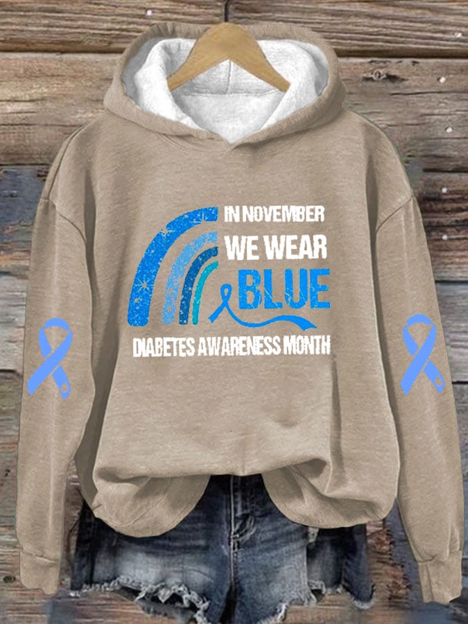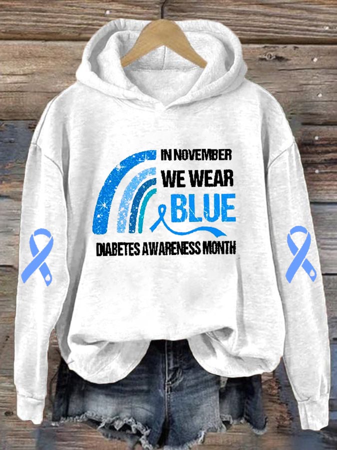 Women's In November We Wear Blue Diabetes Awareness Print Hoodie Long Sleeve Sweatshirt