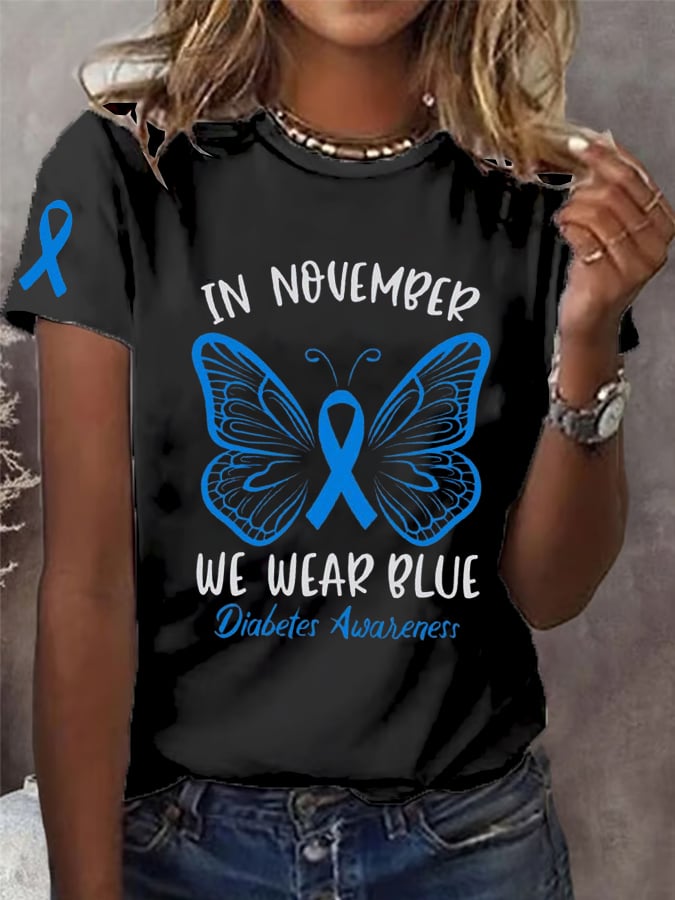 Women's In November We Wear Blue Diabetes Awareness Printed Casual T-shirt