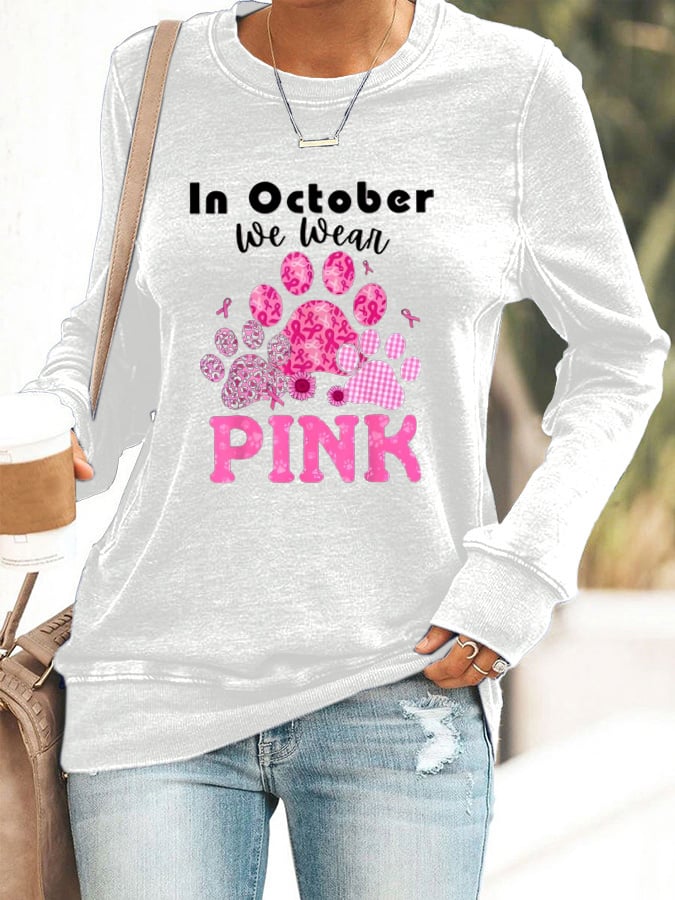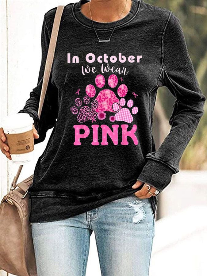 Women's In October We Wear Pink Dog Cat Paw Sweatshirt