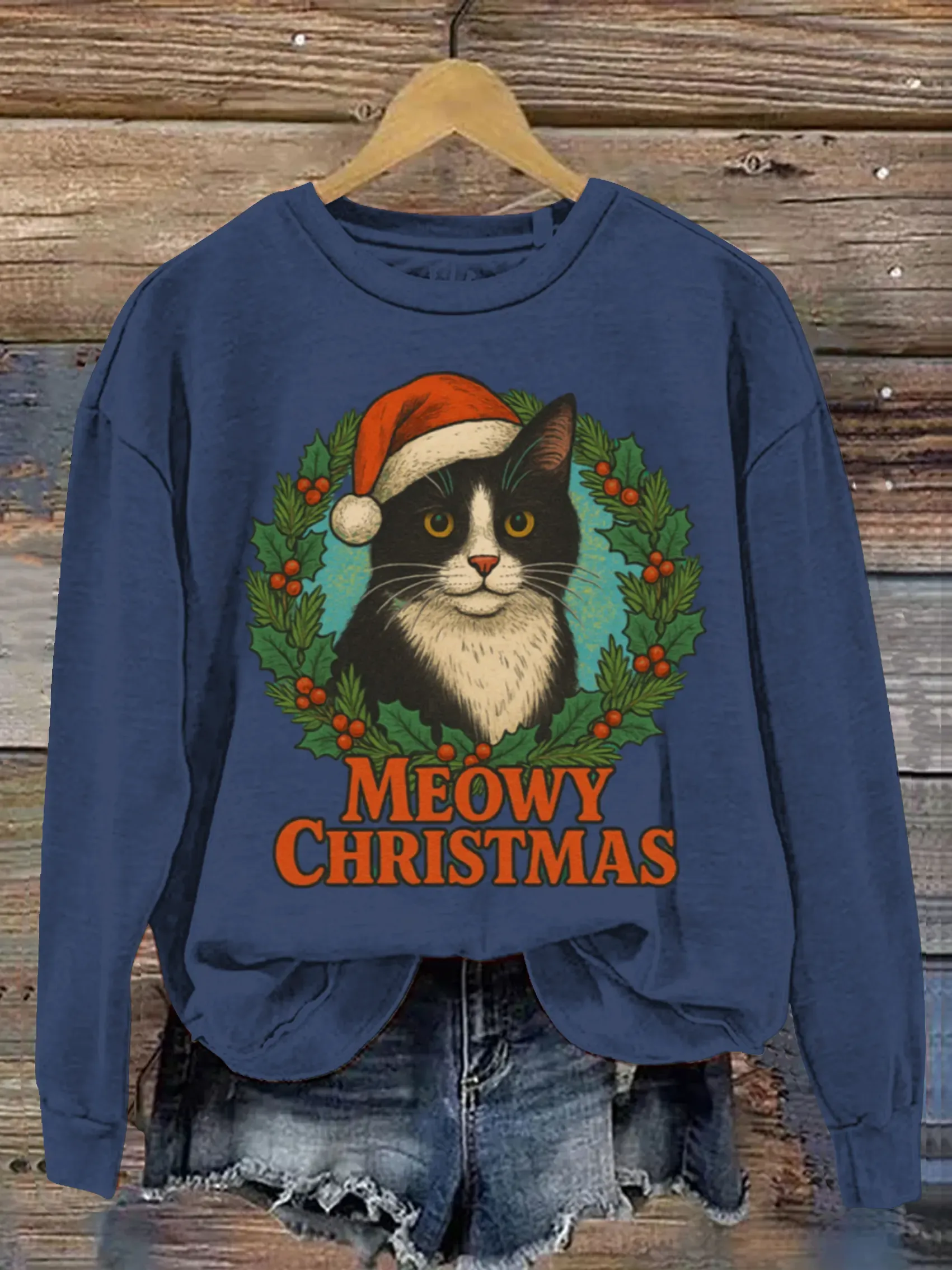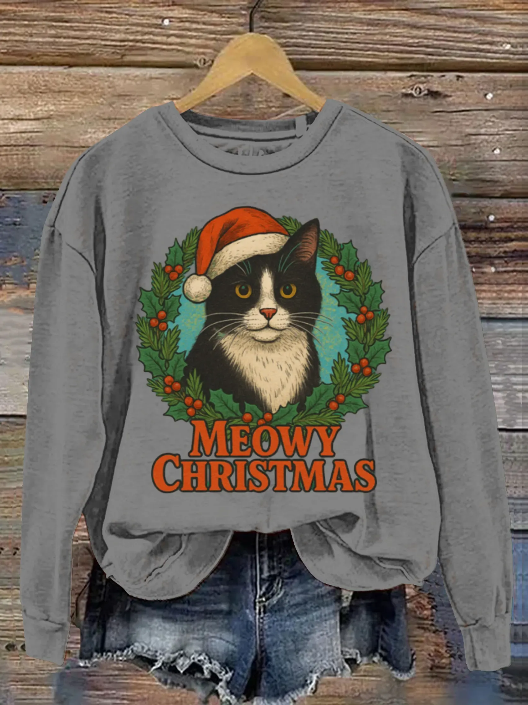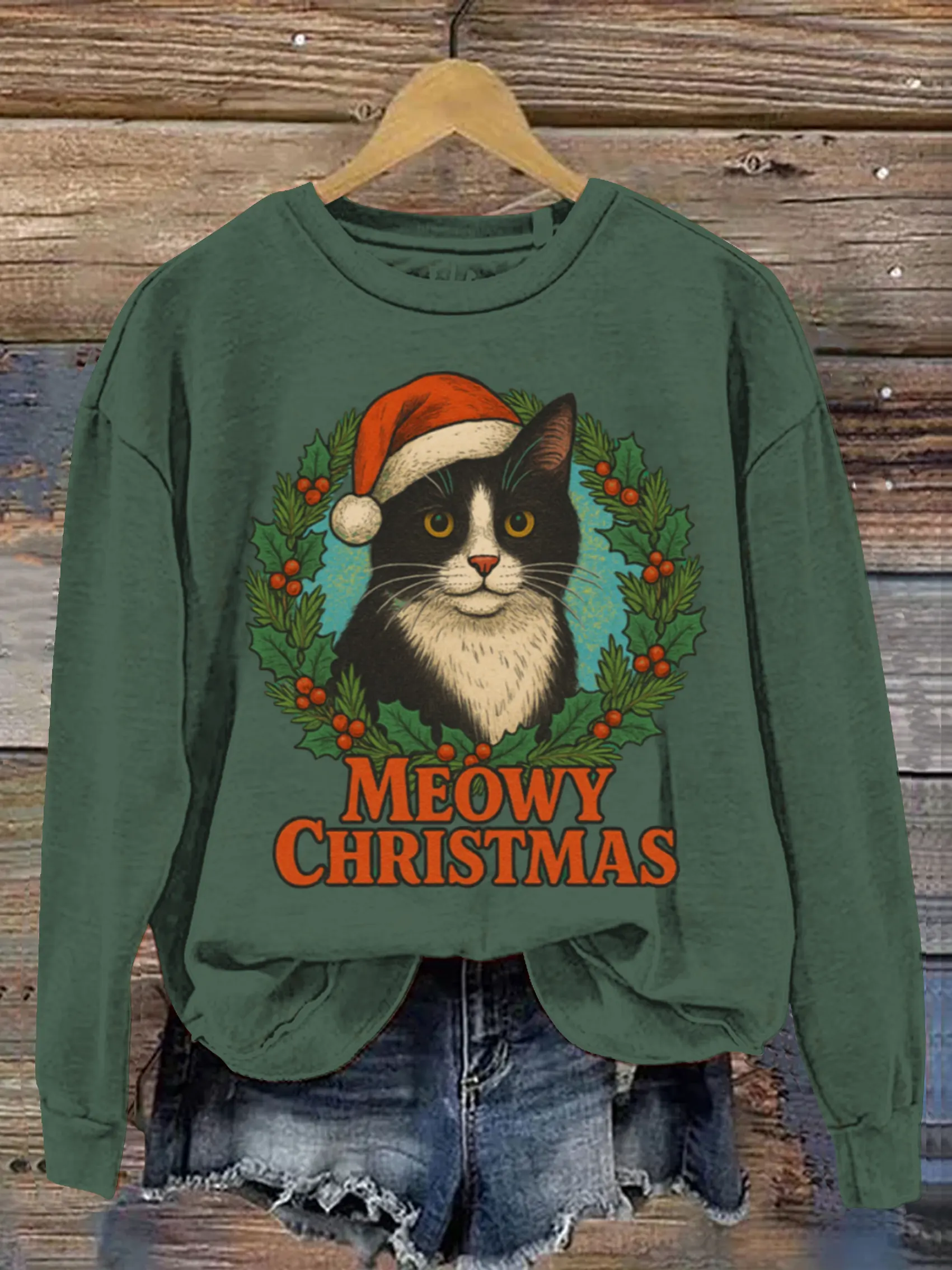 Cat Christmas Vintage Art Print Casual Sweatshirt