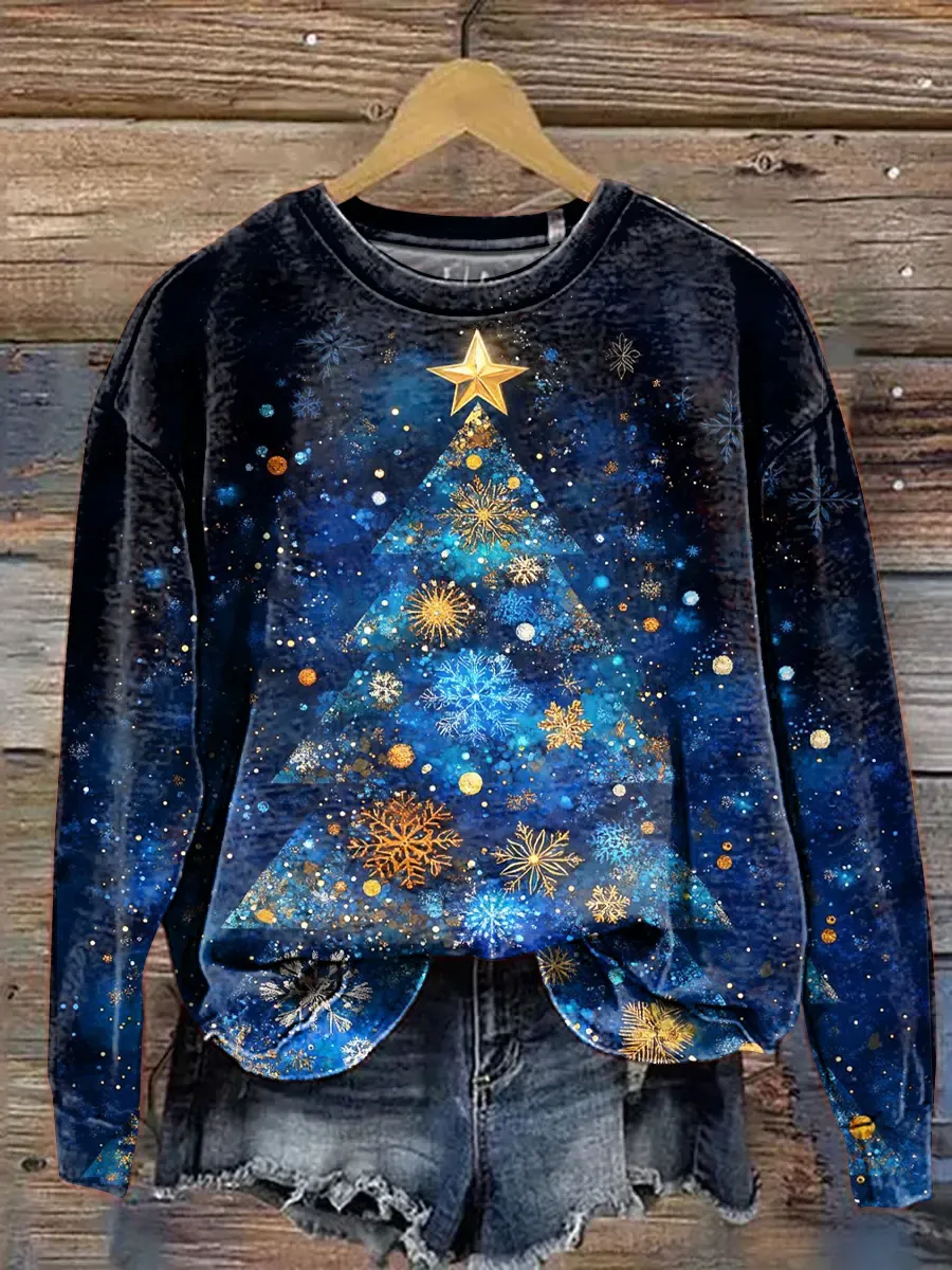 Christmas Tree Pattern Art Print Casual Cotton Sweatshirt