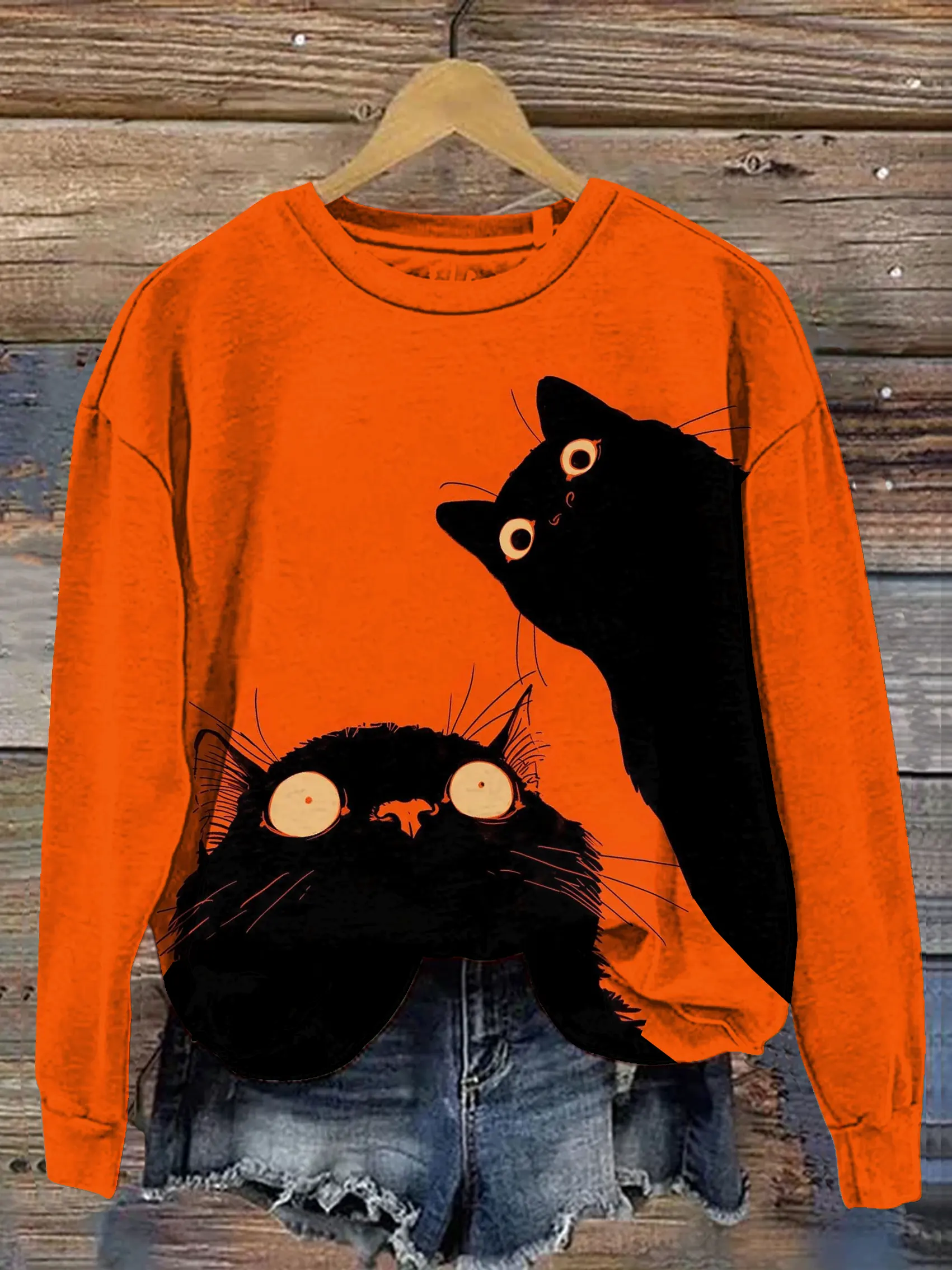 Cute Cat Christmas Art Print Casual Sweatshirt