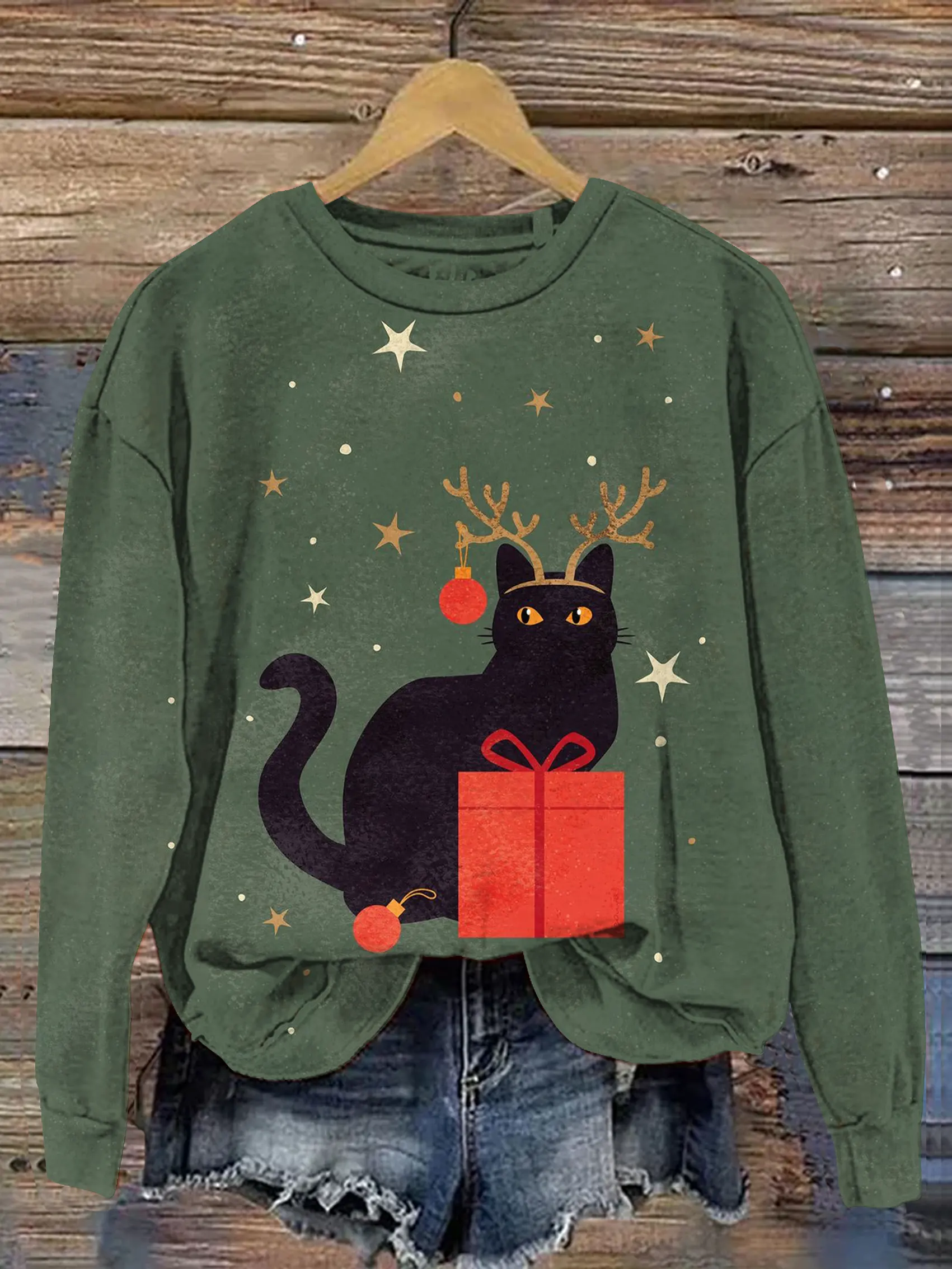 Cute Cat Christmas Art Print Casual Sweatshirt