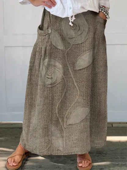 Ethnicity Texture Flower Women's Art Print Linen Pocket Skirt