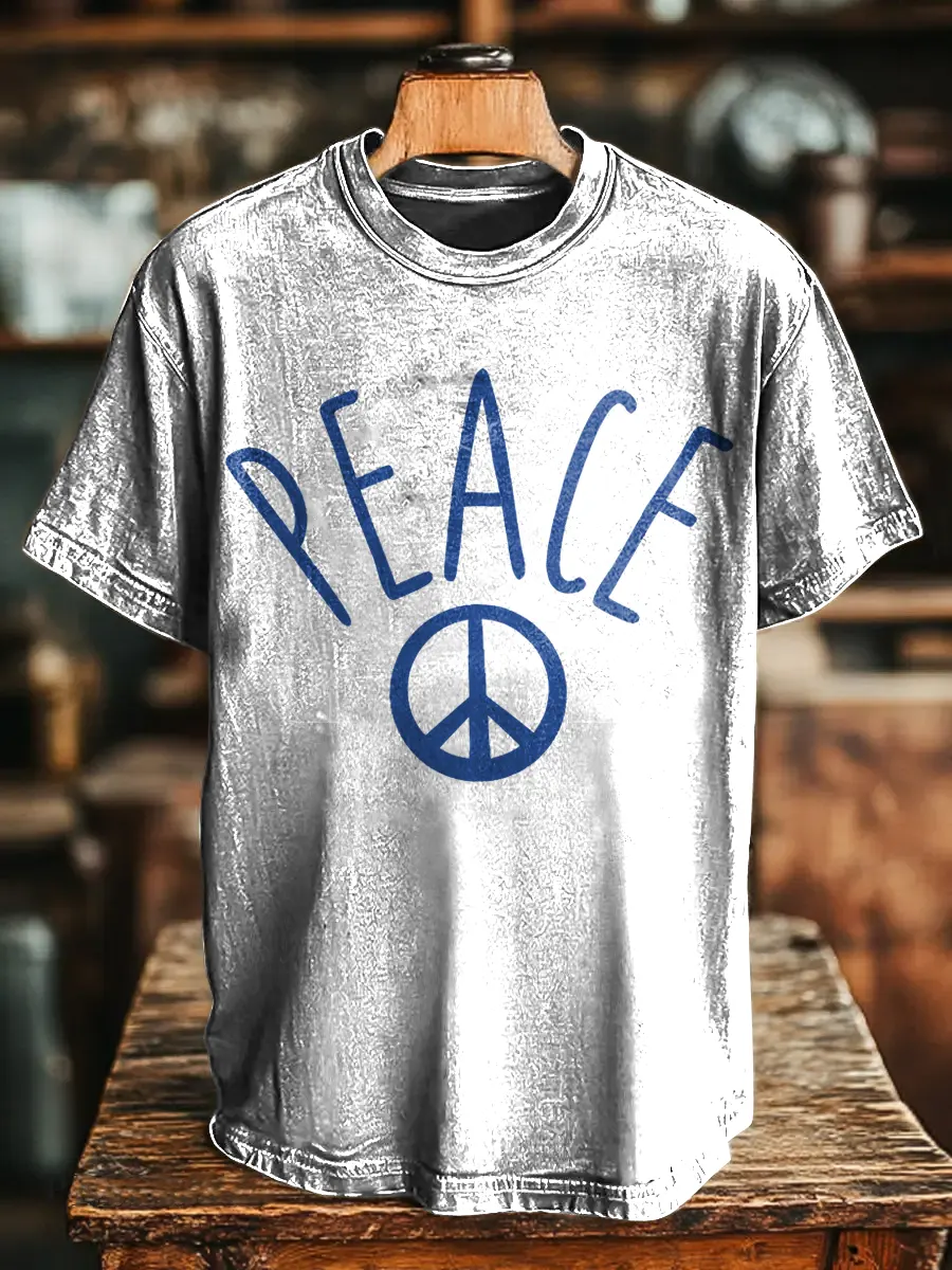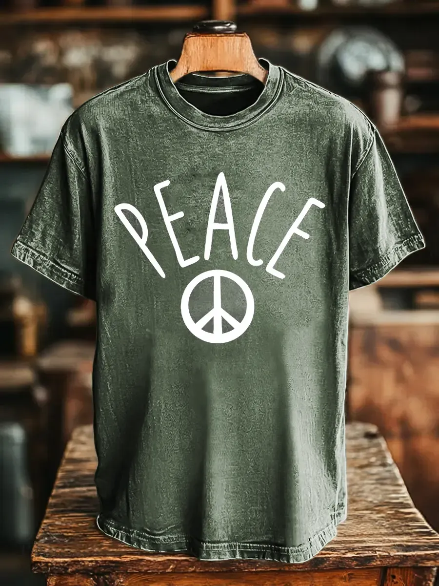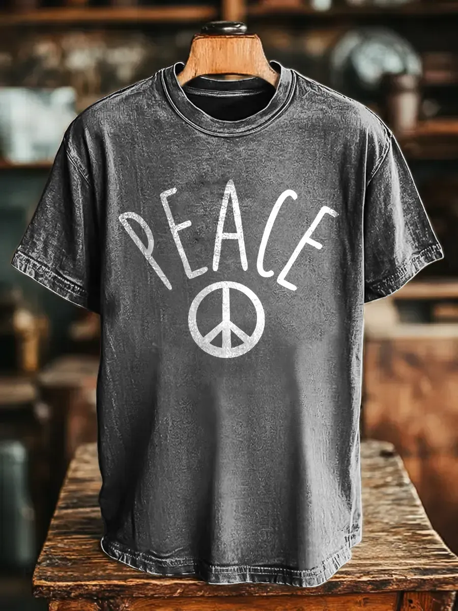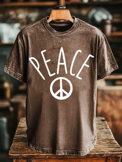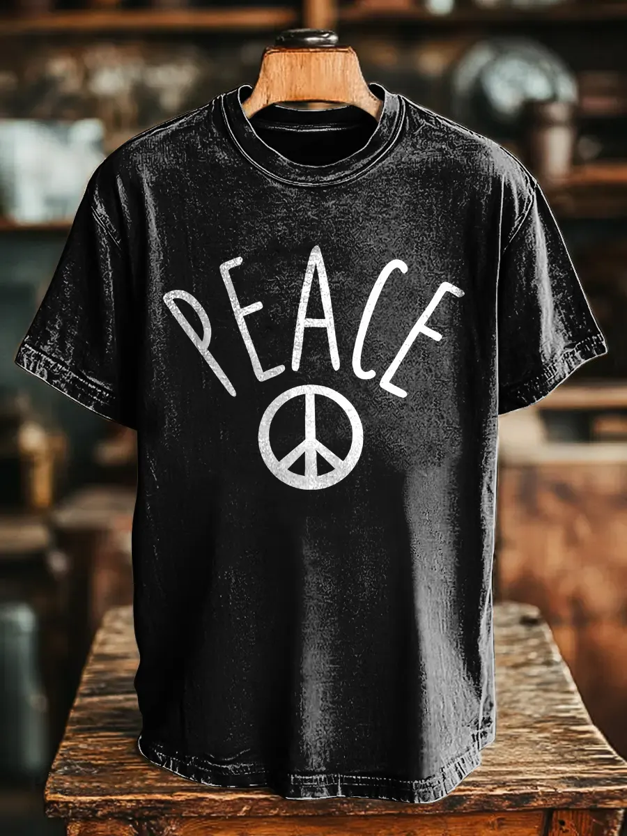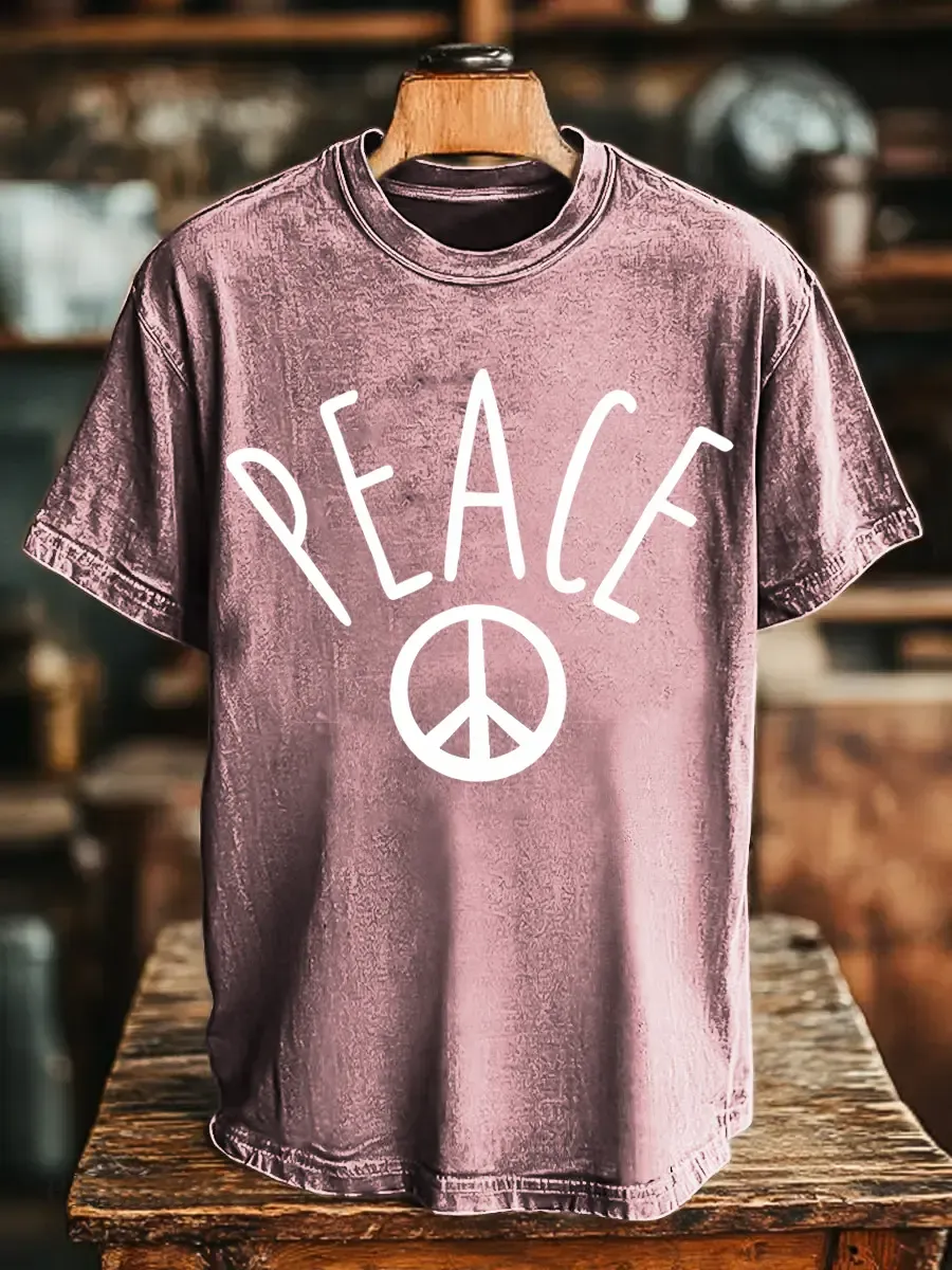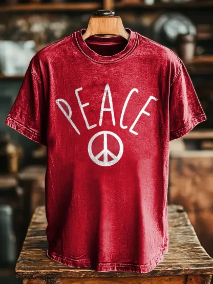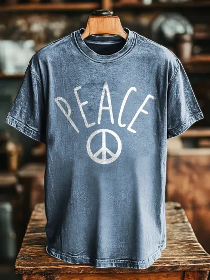Hippie And Peace Unisex Vintage Art Print Casual T-shirt