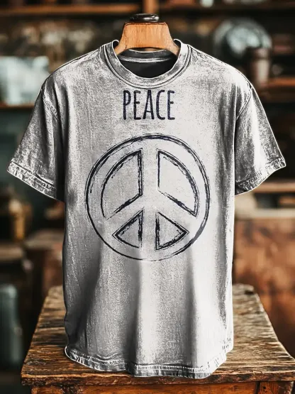 Hippie Peace Doodle Unisex Vintage Art Print Casual T-shirt
