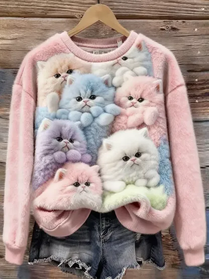 Lovely Colorful Fluffy Fuzzy Cat Cozy Plush Sweatshirt