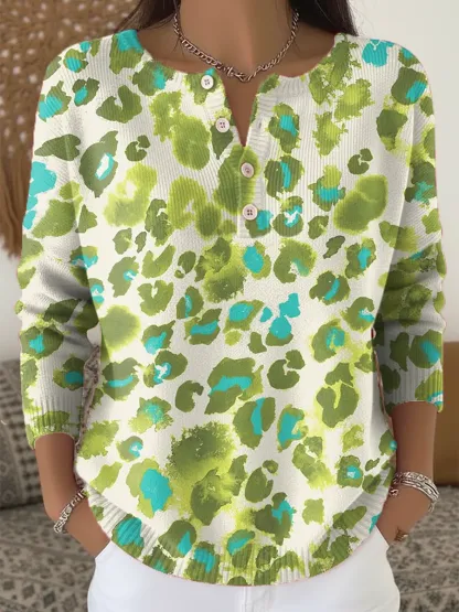 Vintage Floral Art Print Buttoned Cardigan Sweater