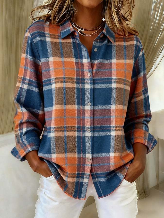 Women's Casual Retro Autumn And Winter Contrasting Color Shirt