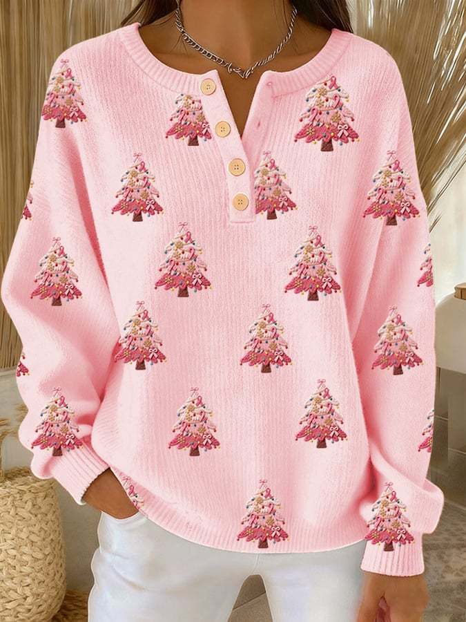 Women's Christmas Print Knit Button Top