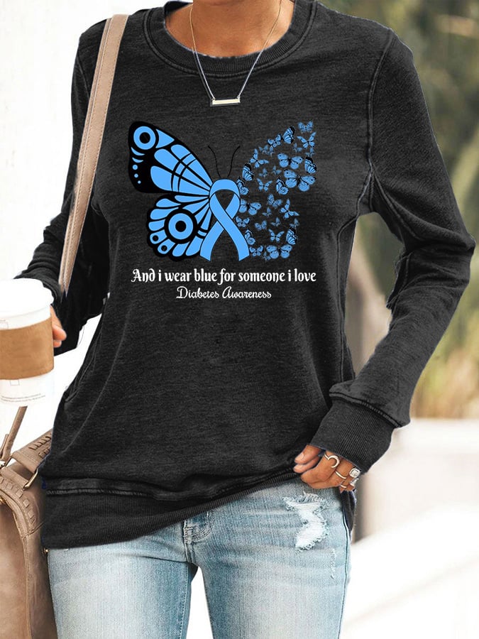 Women's I Wear Blue For Someone I Love Diabetes Awareness Print Casual Sweatshirt