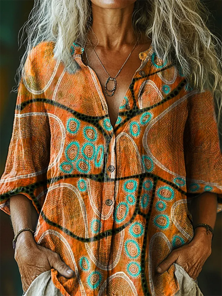 Women's Bohemian Totem Pattern Art Print Casual Cotton Linen Shirt
