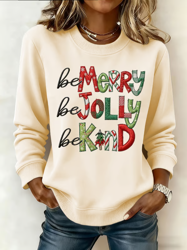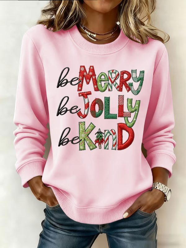 Be Merry Be Jolly Be Kind Christmas Print Casual Sweatshirt