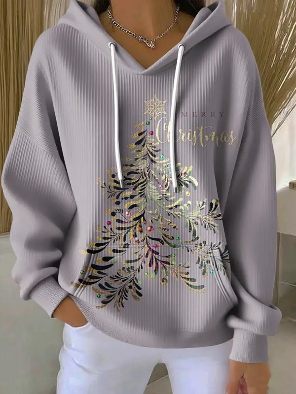 Retro Merry Christmas Christmas Tree Print Casual Hoodie Sweatshirt