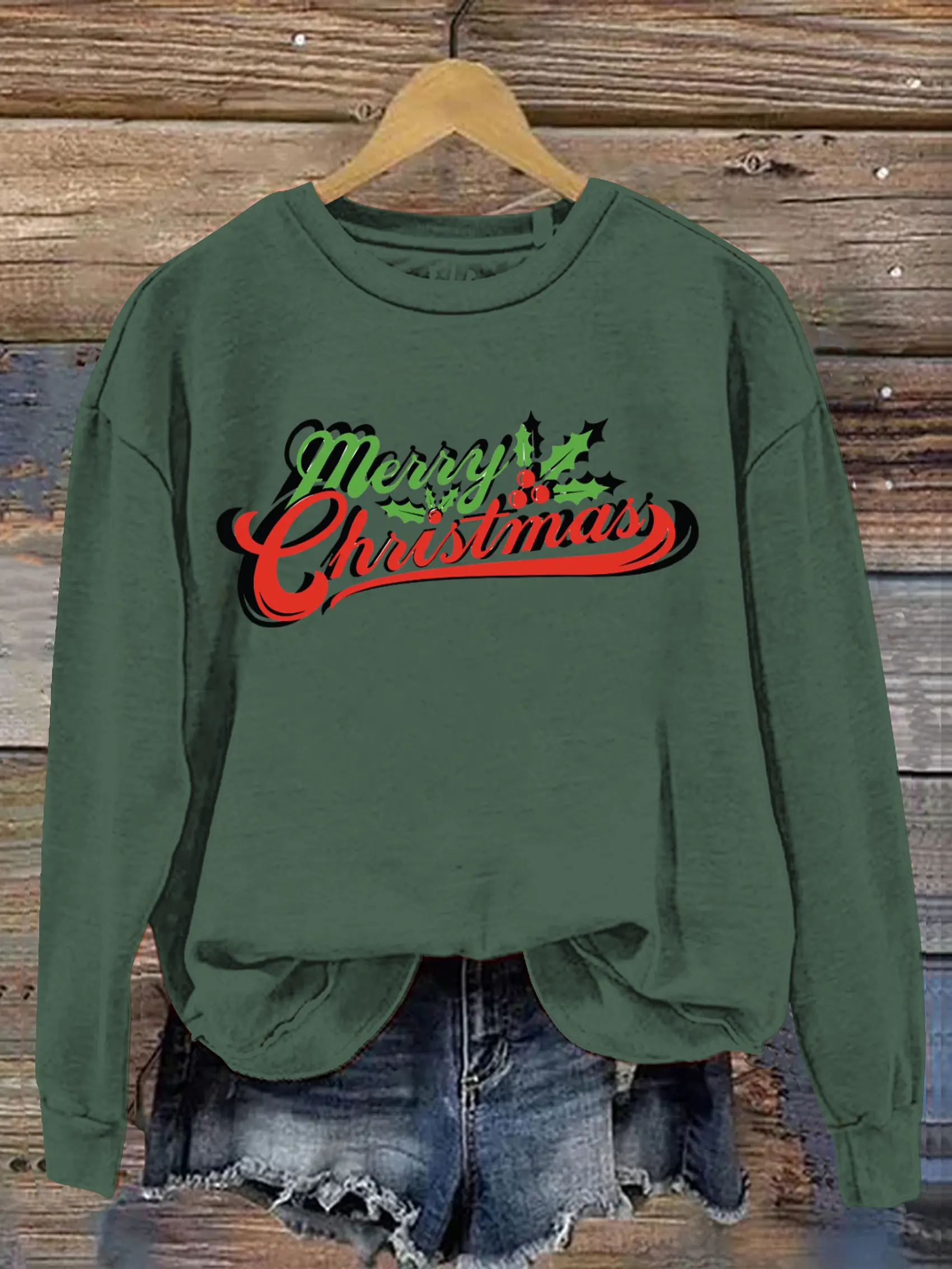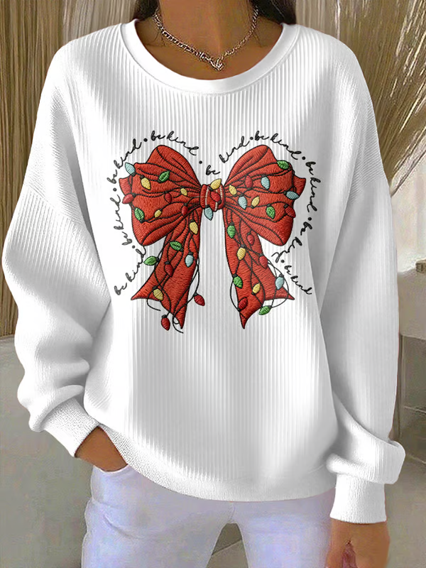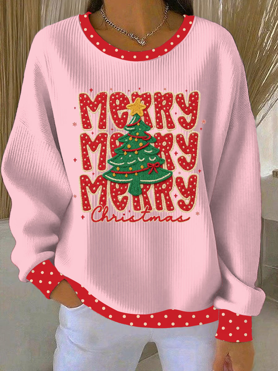 Women's Merry Christmas print Ribbed Round-Neck Sweatshirt