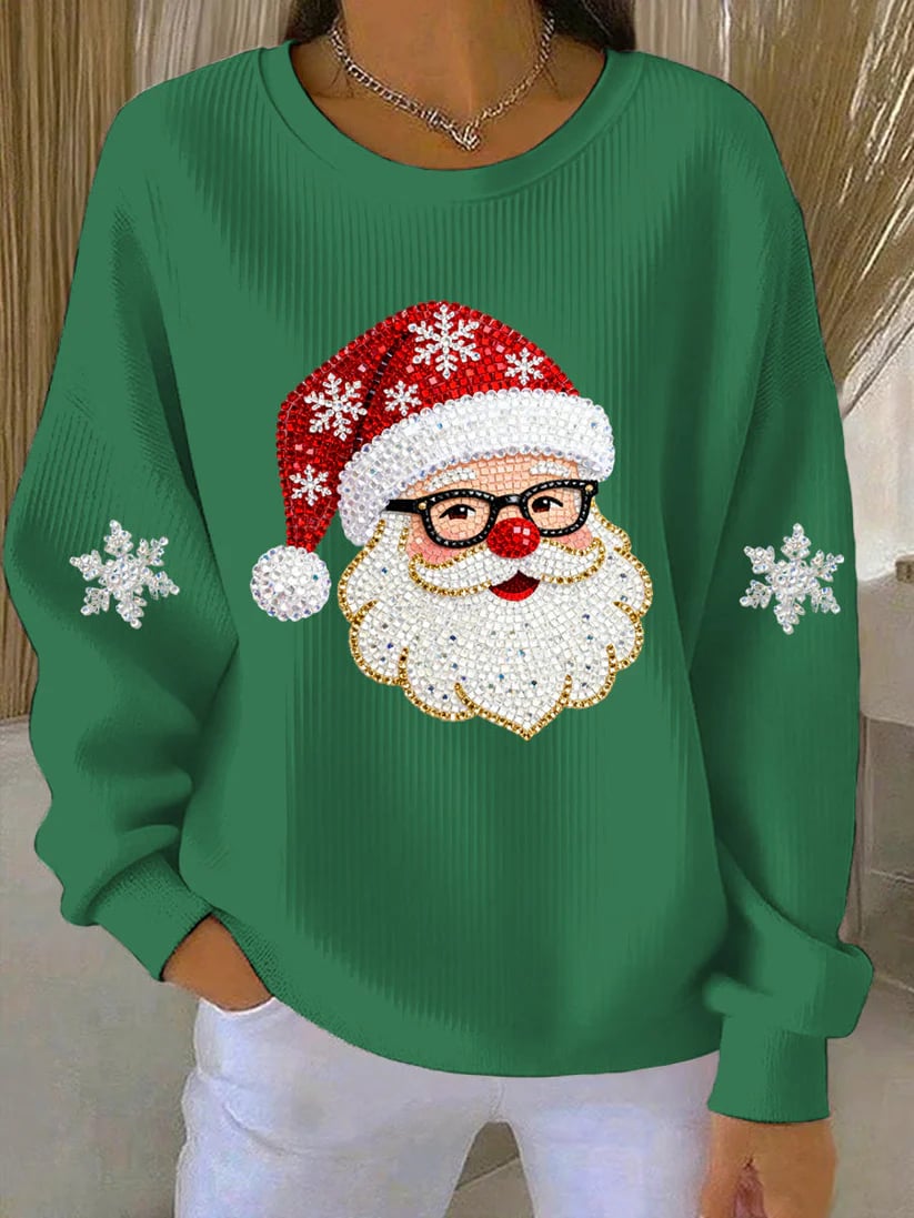 Women's Santa Claus Printed Ribbed Round-Neck Sweatshirt