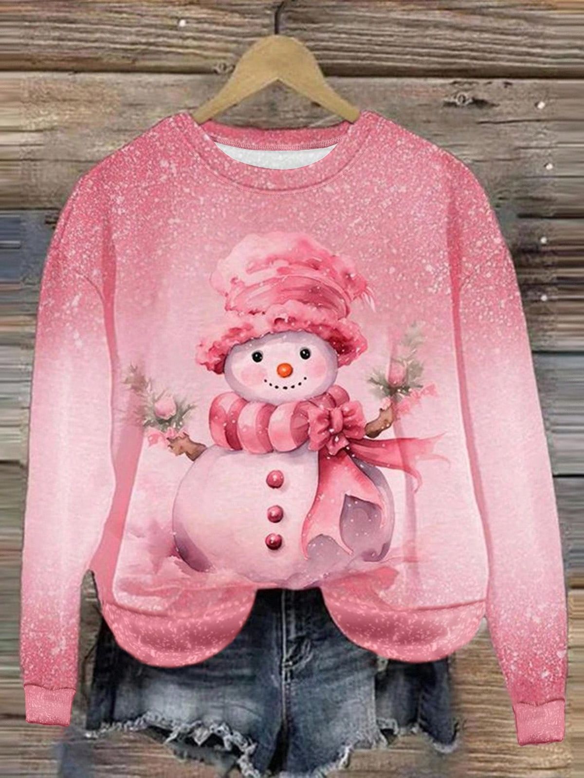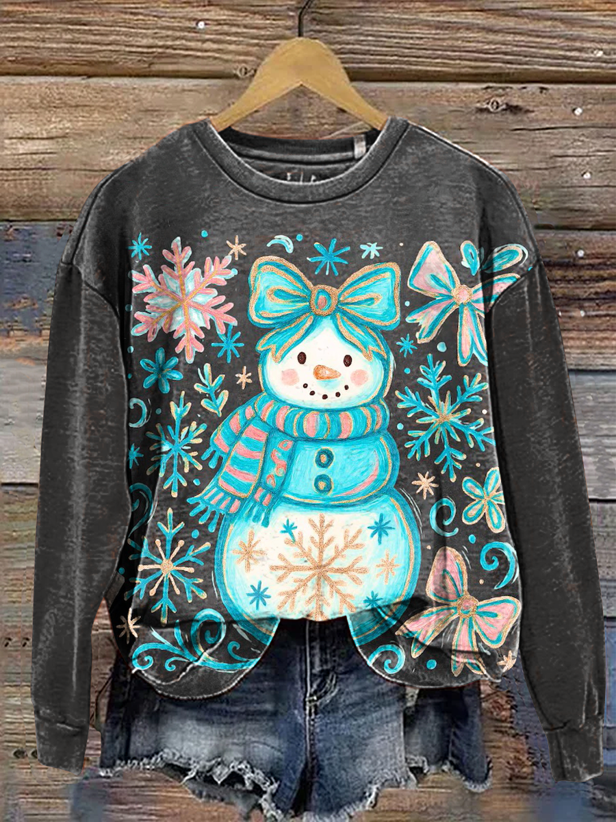 Women's Christmas Pattern Art Print Casual Cotton Sweatshirt