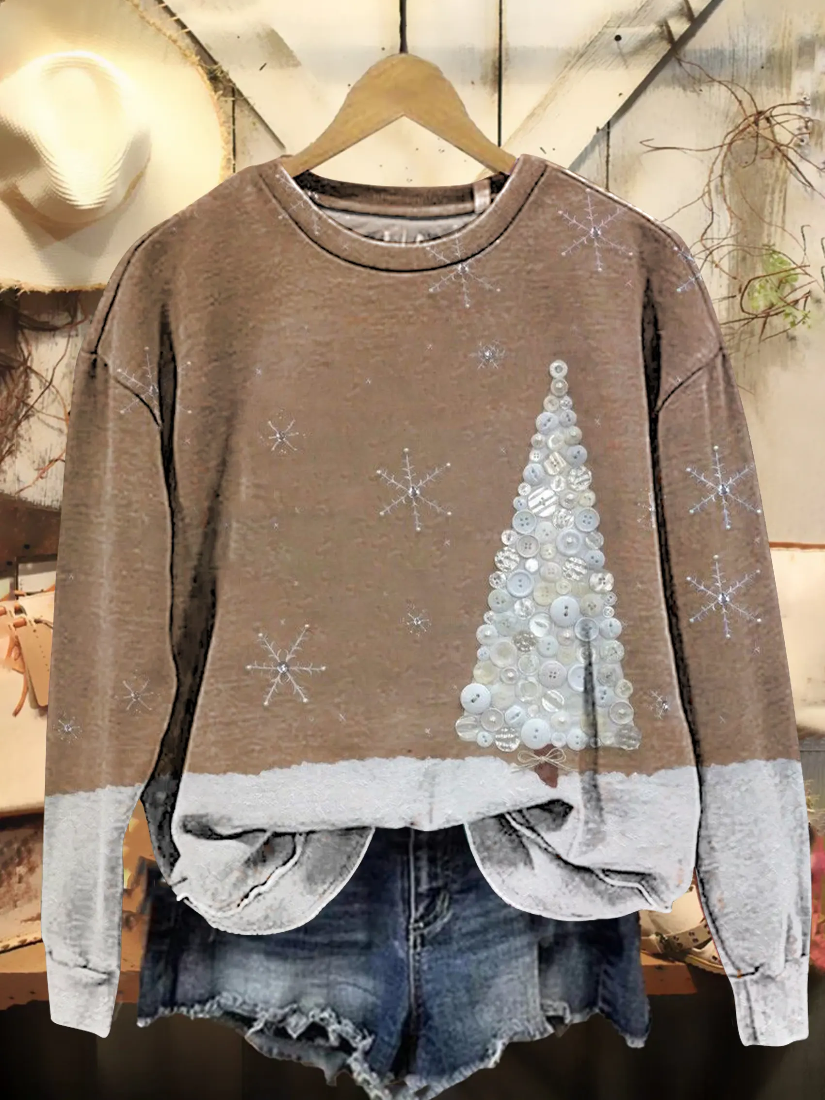 Vintage Christmas Patchwork Art Print Casual Sweatshirt