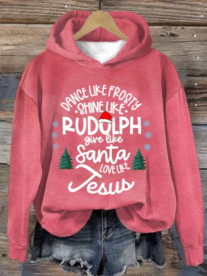 Women'S Dance Like Frosty, Shine Like Rudolph, Give Like Santa Love Like Jesus Christmas Casual Printed Long-Sleeved Hooded Sweatshirt