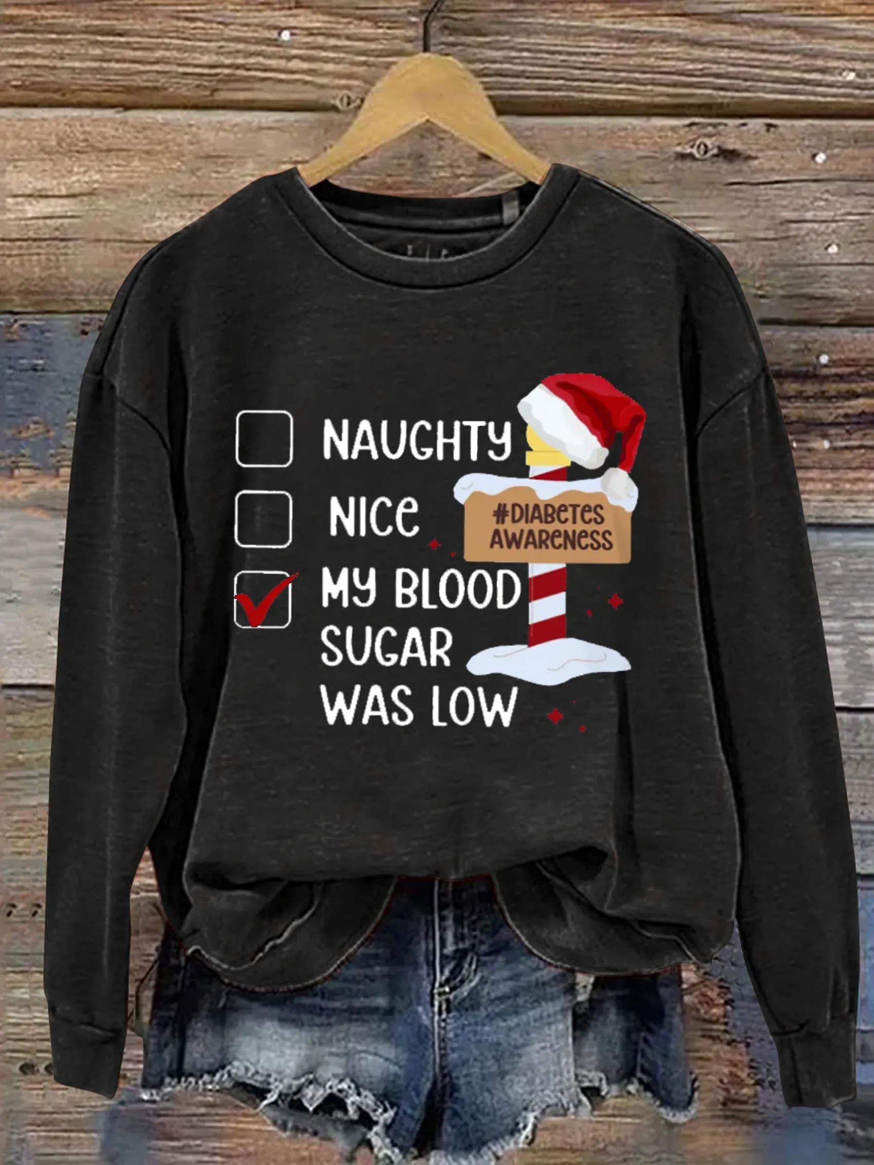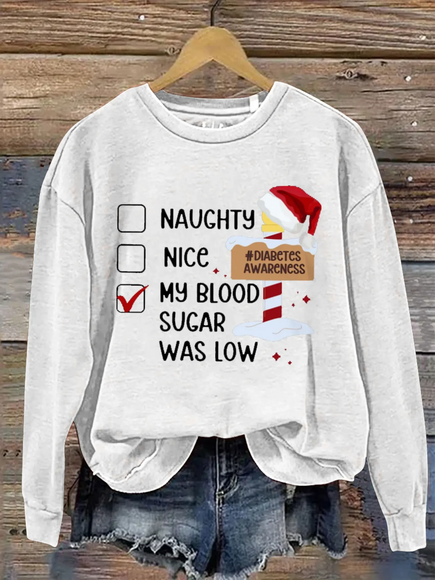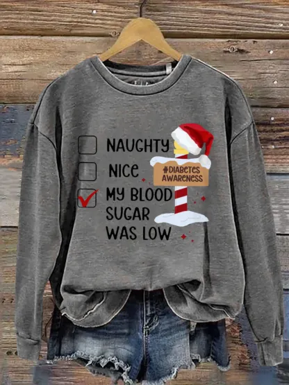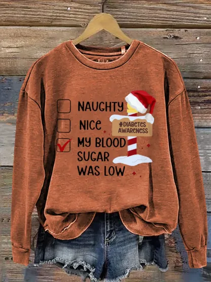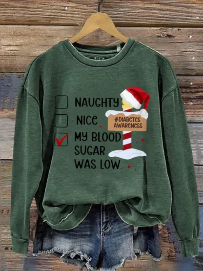 Christmas Diabetes Awareness Print Casual Sweatshirt