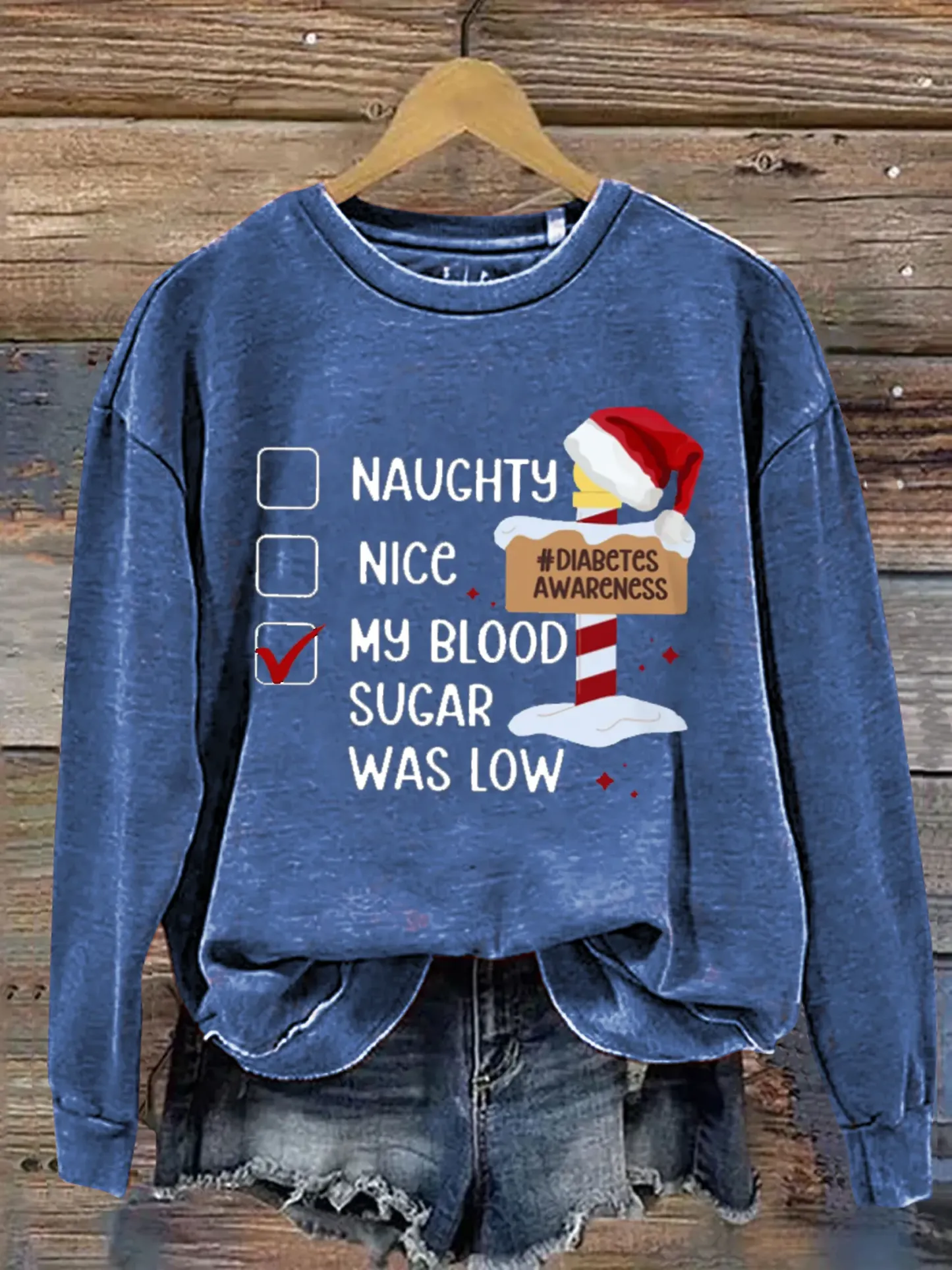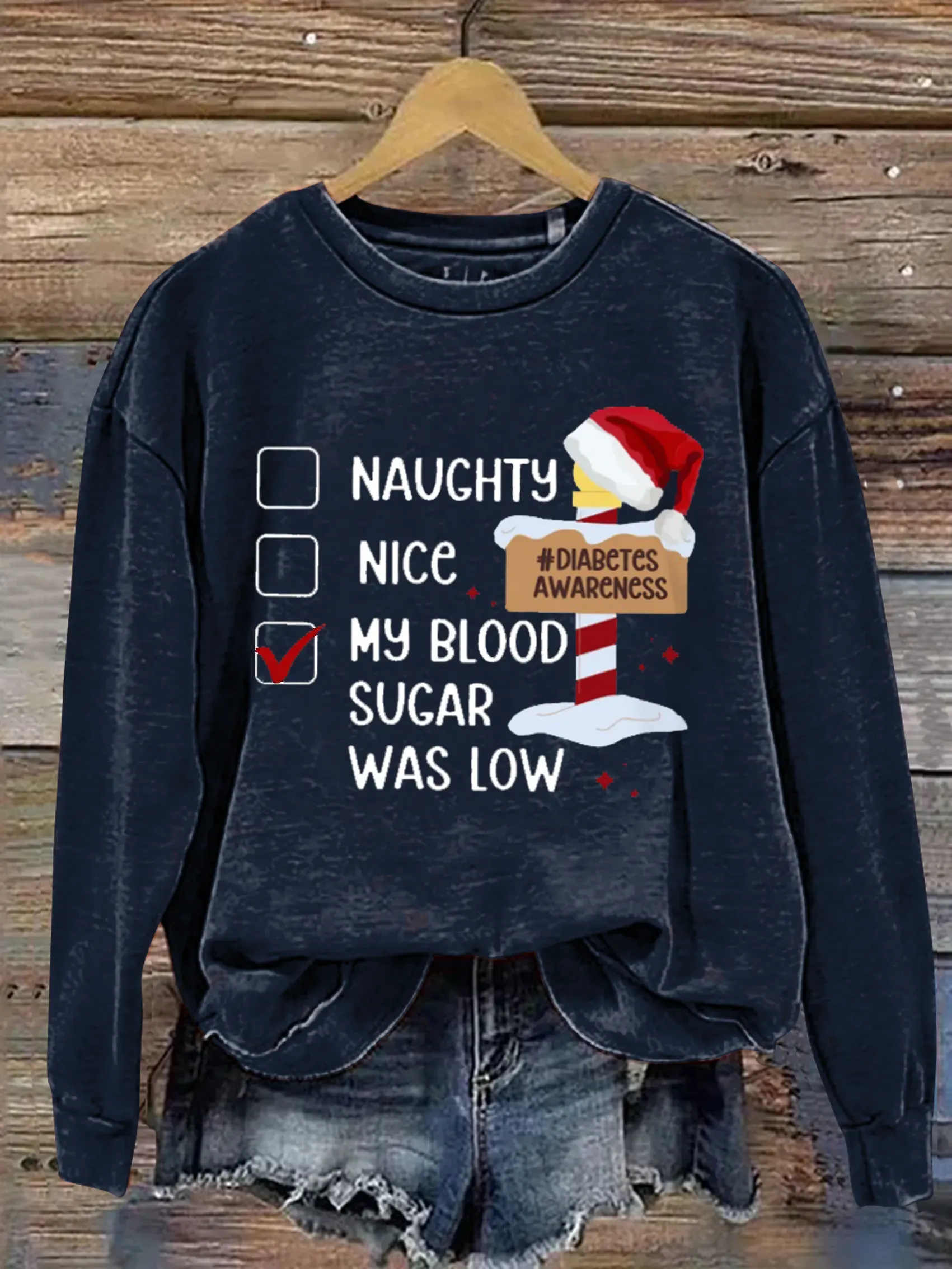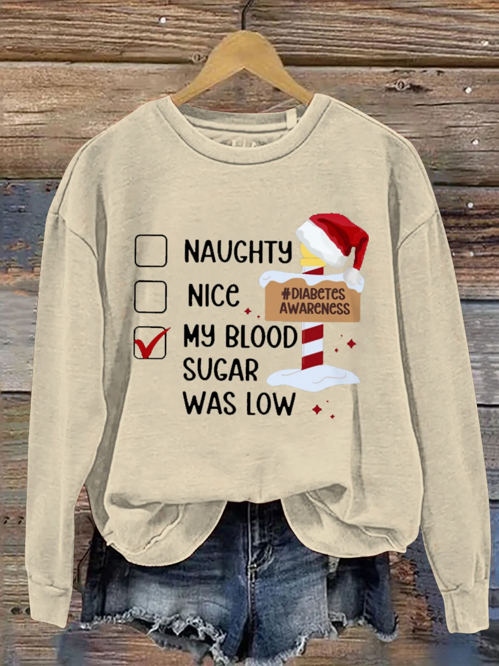 Christmas Diabetes Awareness Print Casual Sweatshirt