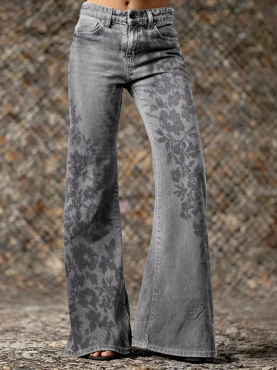 Ethnicity Flowers Texture Women's Print Casual Wide Leg Pants