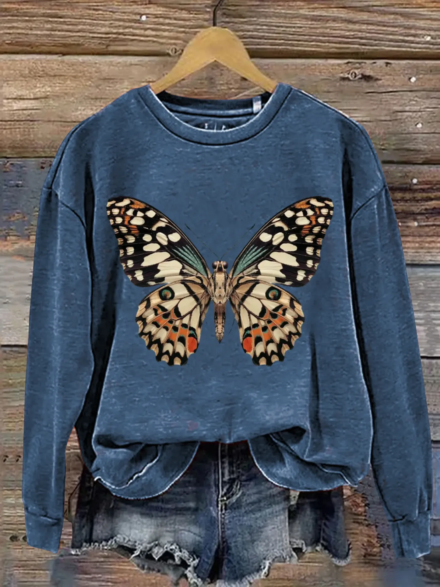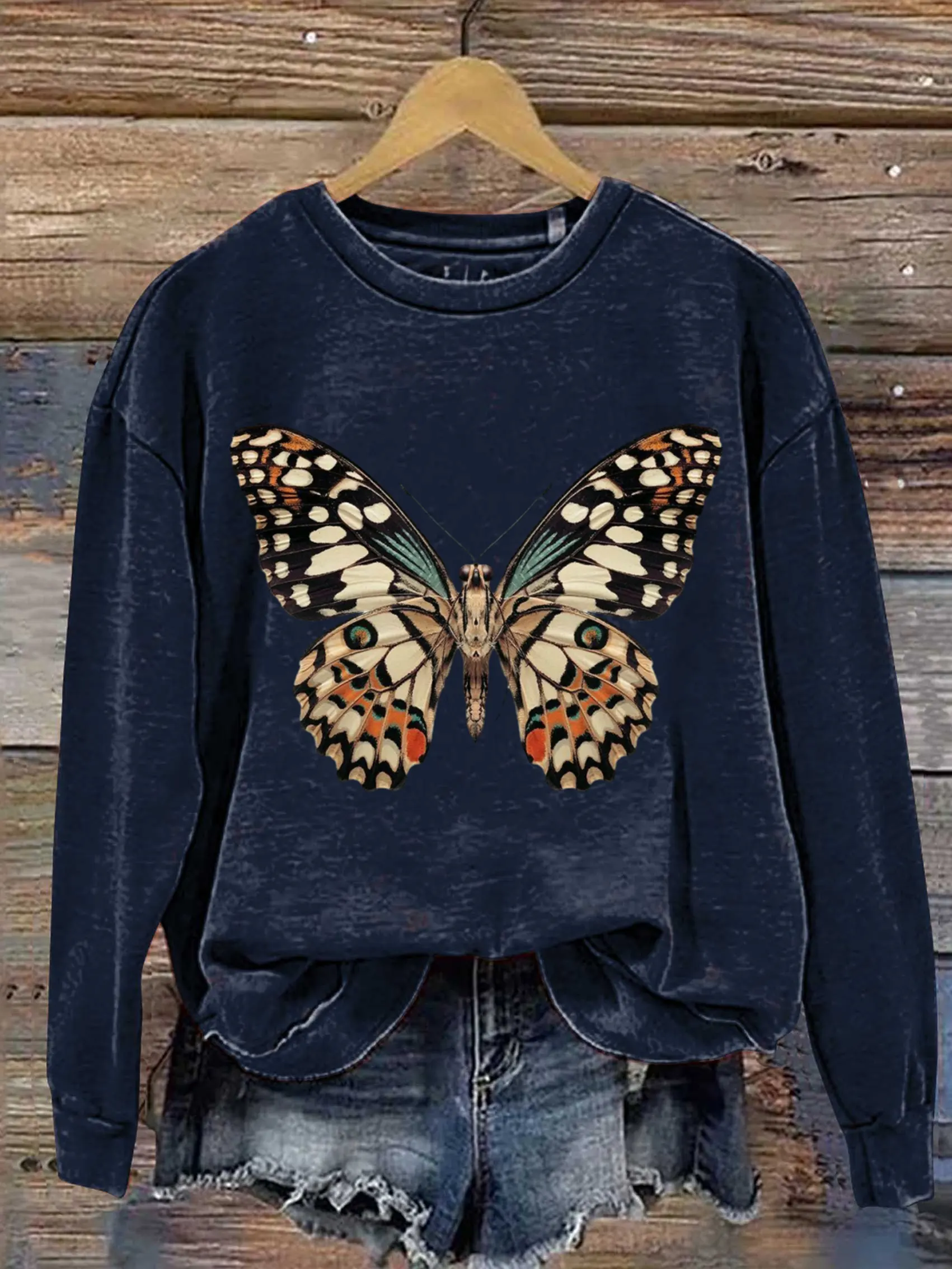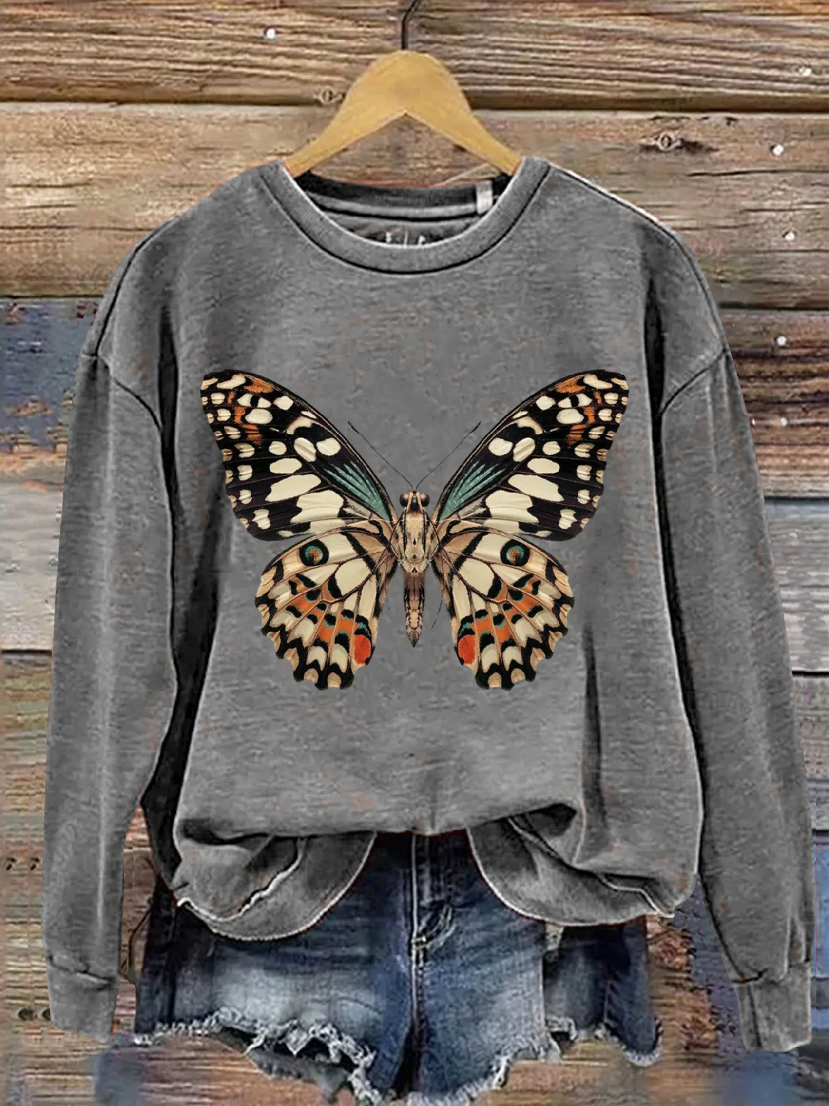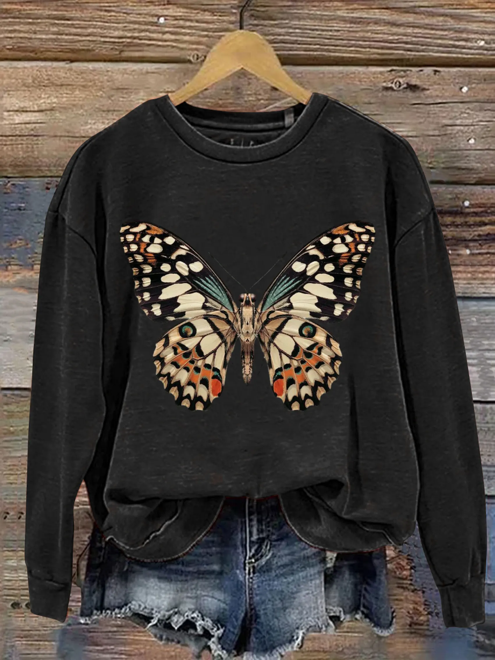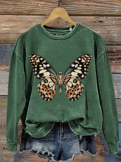 Vintage Butterfly Art Print Casual Sweatshirt