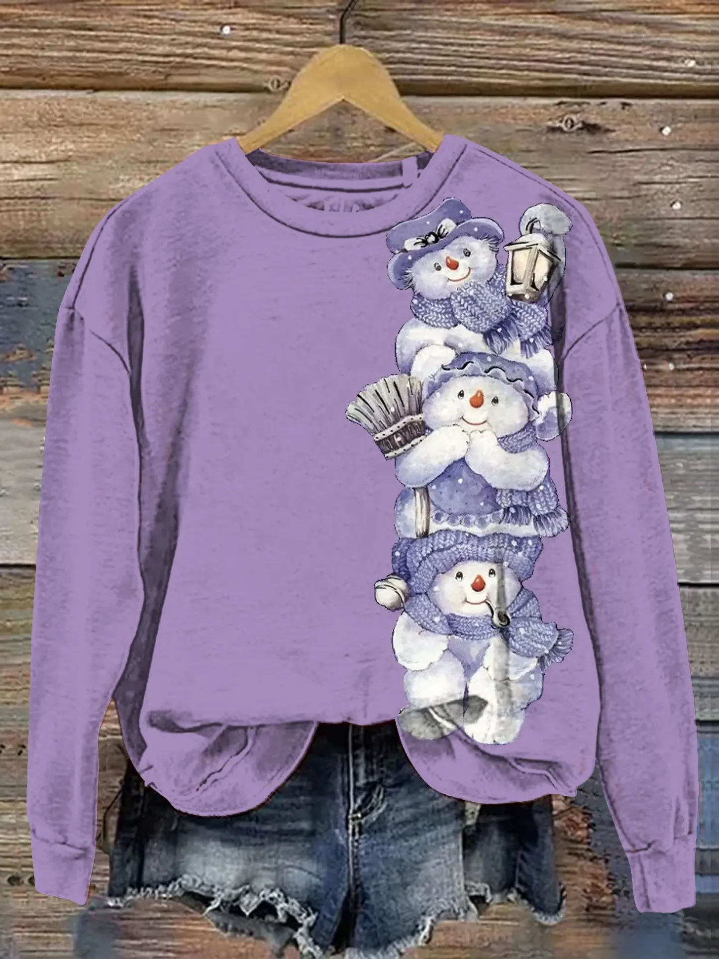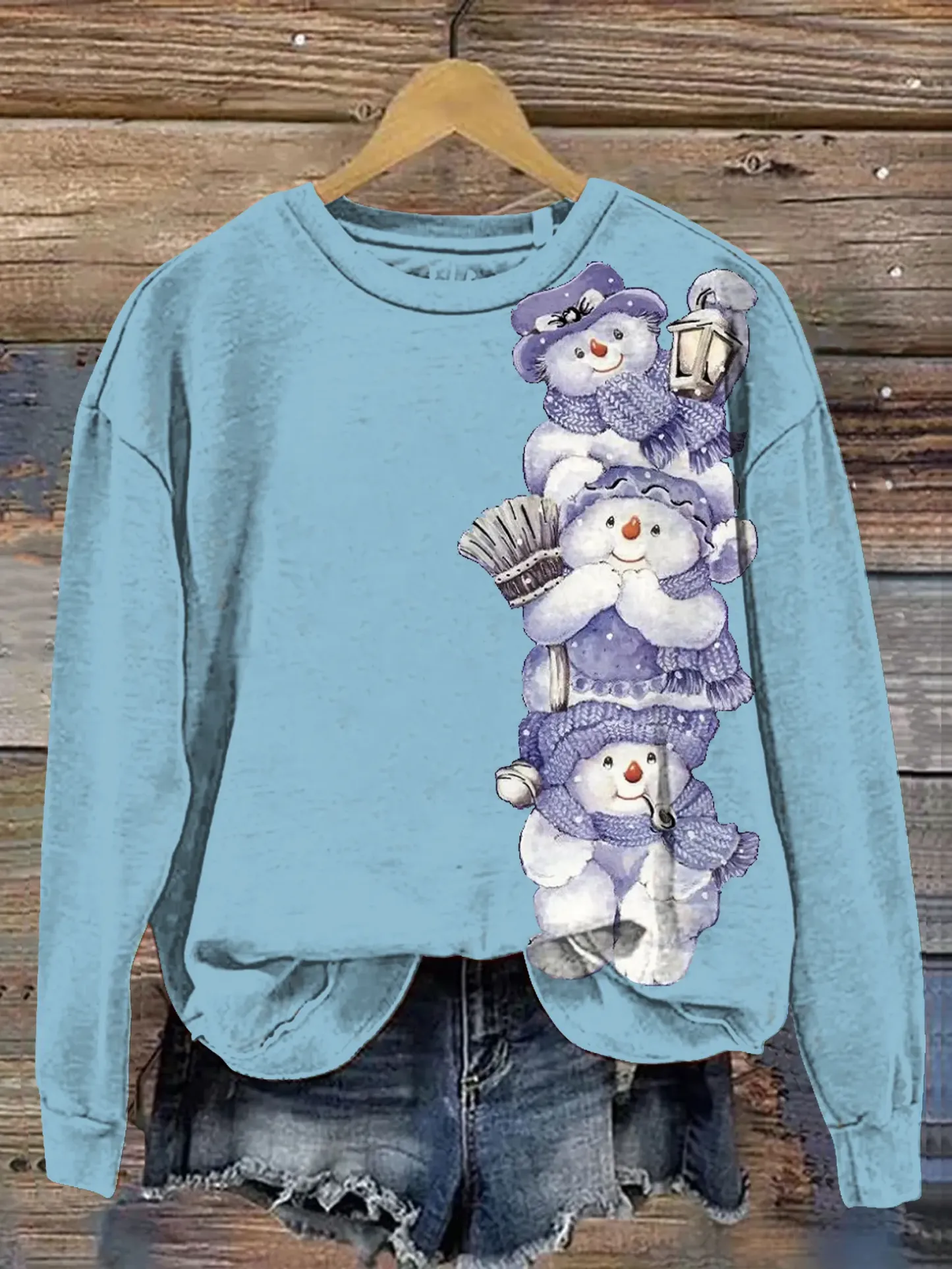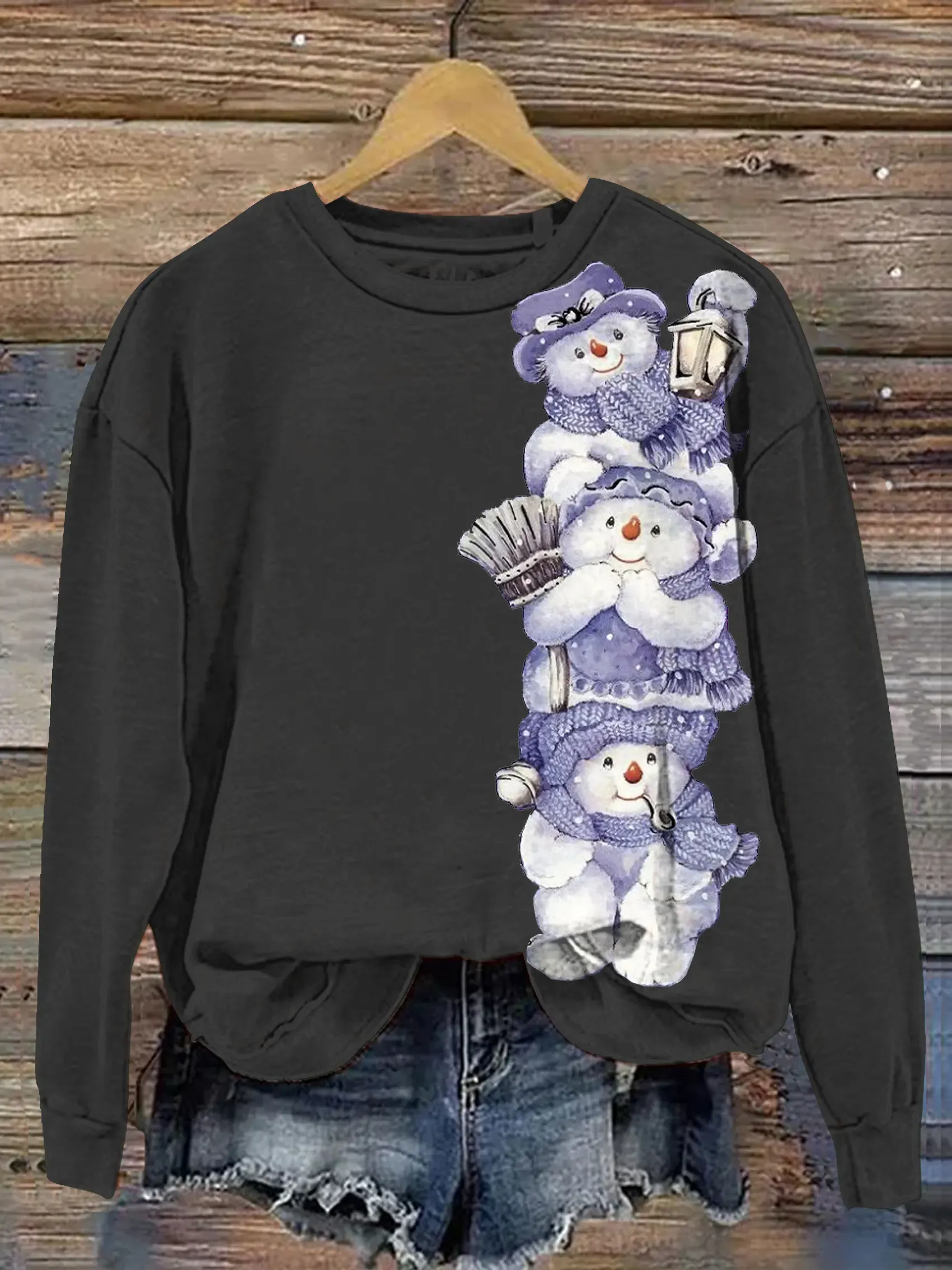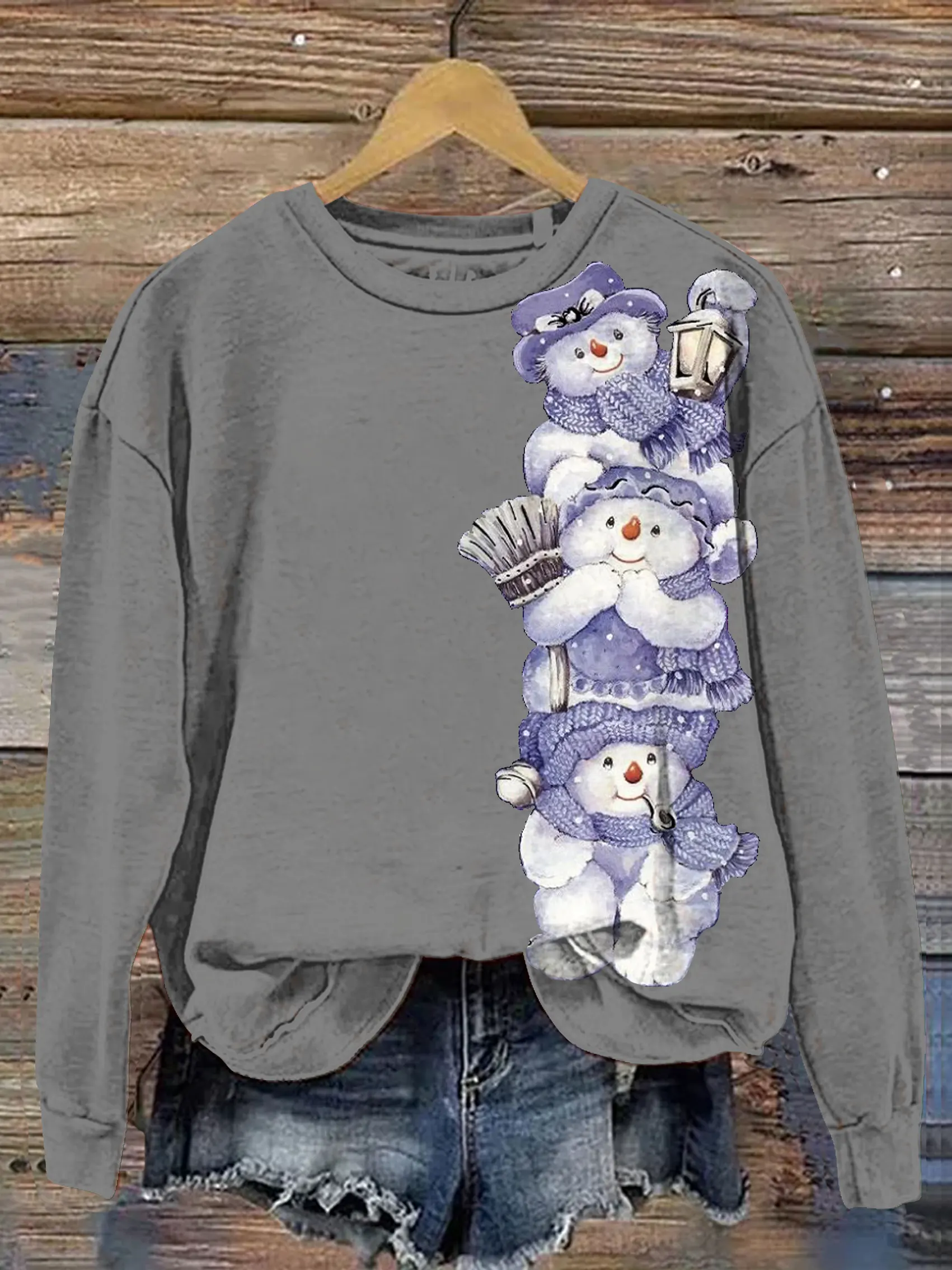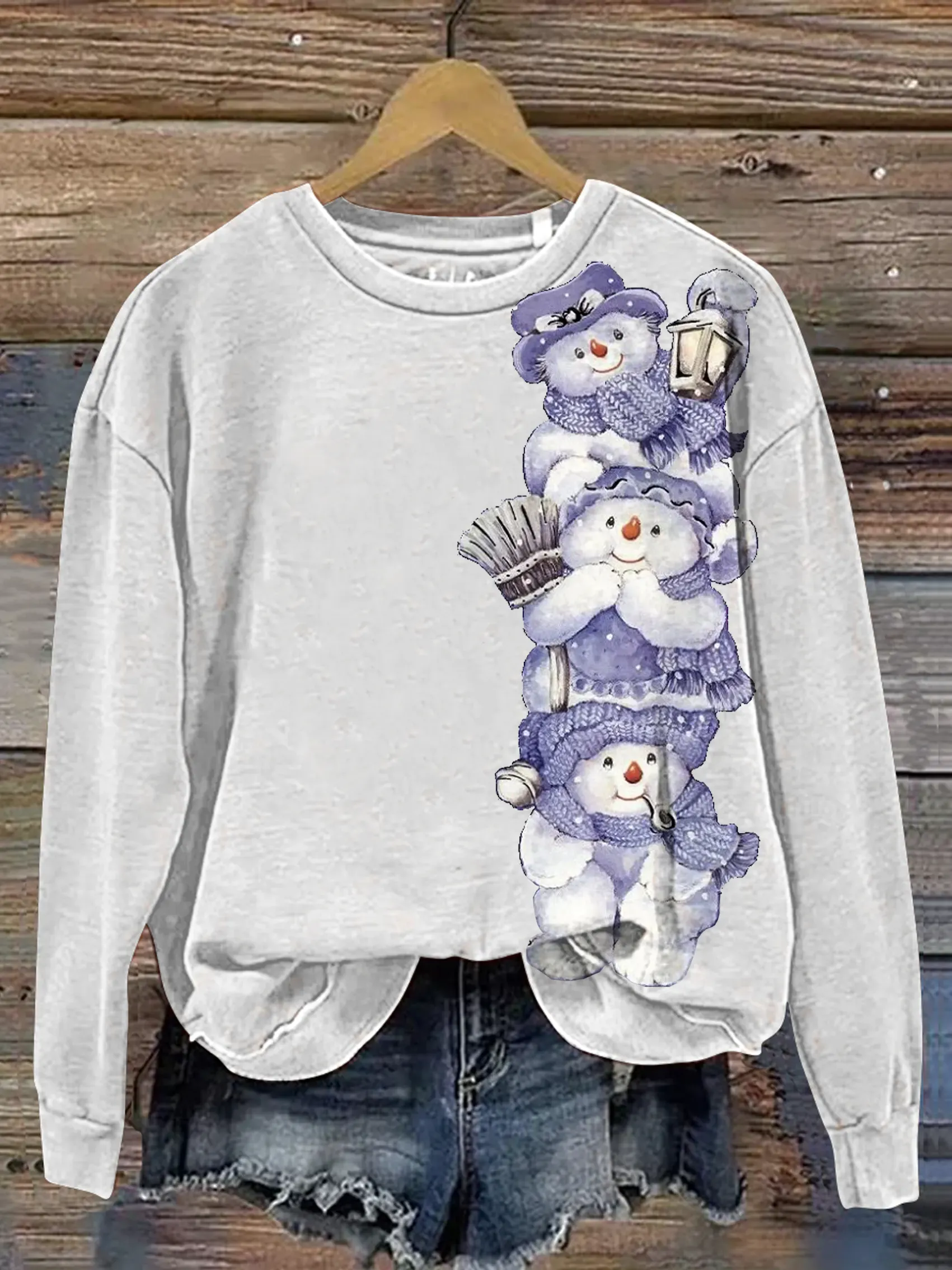 Vintage Snowman Art Print Casual Sweatshirt