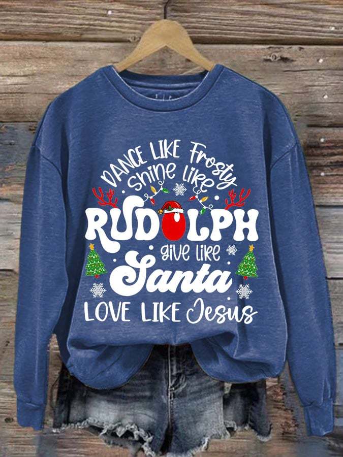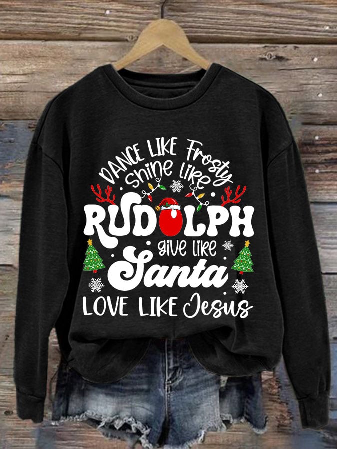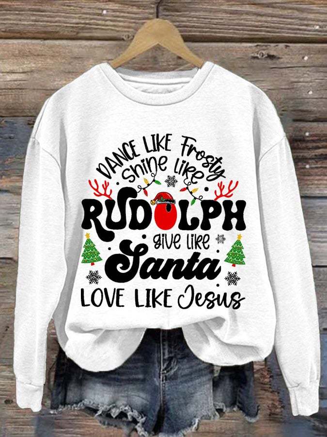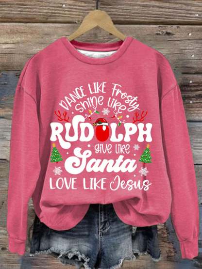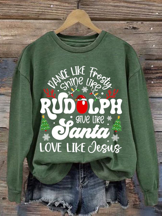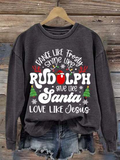 Women'S Casual Dance Like Frosty Shine Like Rudolph Give Like Santa Love Like Jesus Printed Long Sleeve Sweatshirt