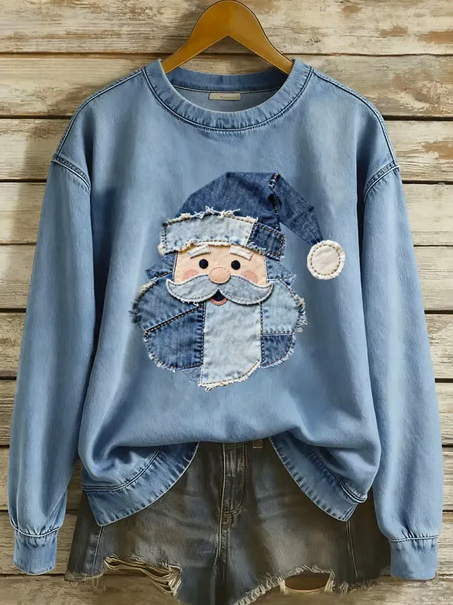 Women's Christmas Santa Pattern Art Print Casual Cotton Sweatshirt