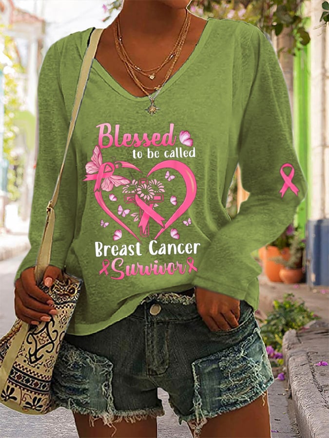 Blessed To Be Called Breast Cancer Survivor Printed Long Sleeve T-Shirt