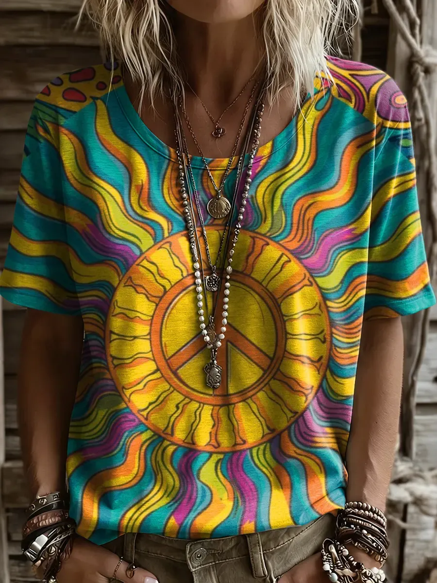 Vintage Hippie Geometry Women And Men's Vintage Art Print Casual T-shirt