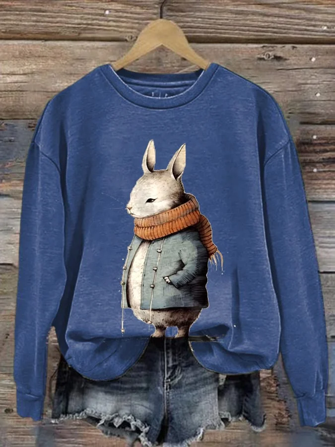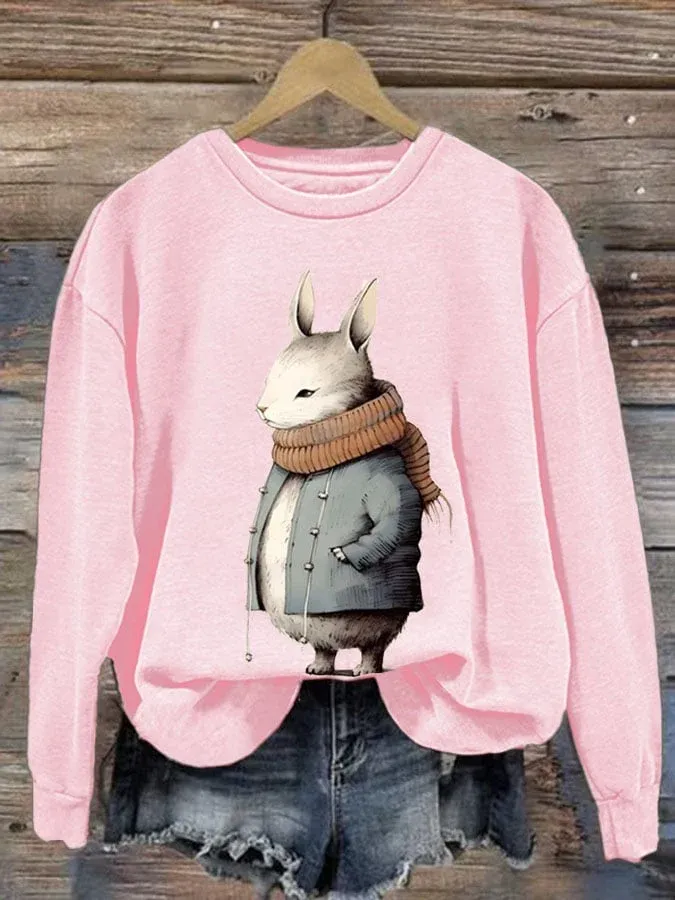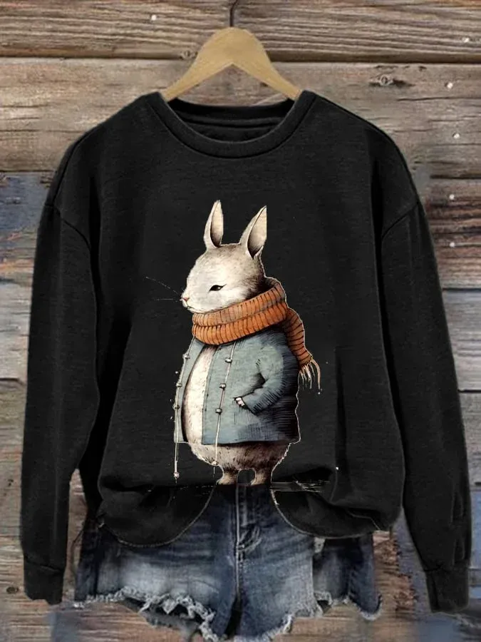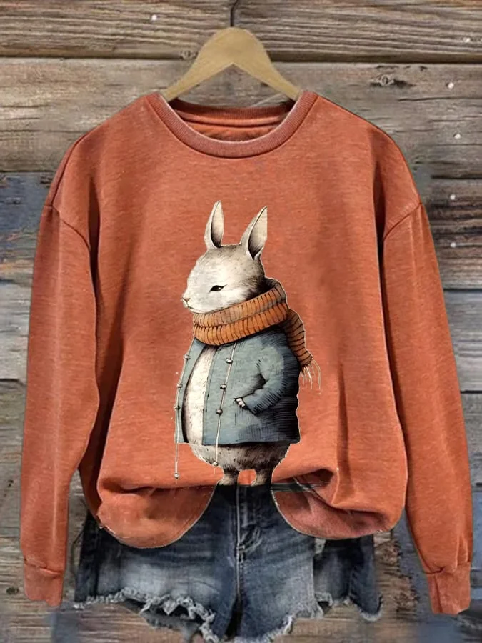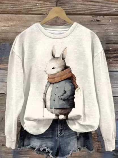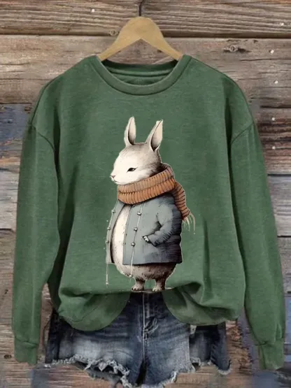 Funny Vintage Rabbit Art Print Casual Sweatshirt