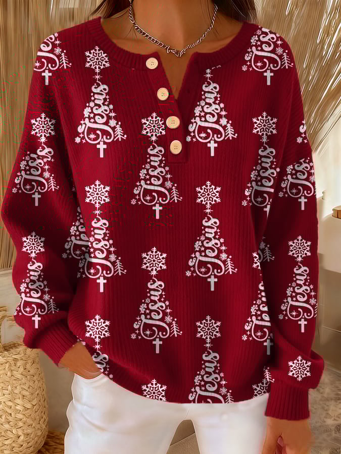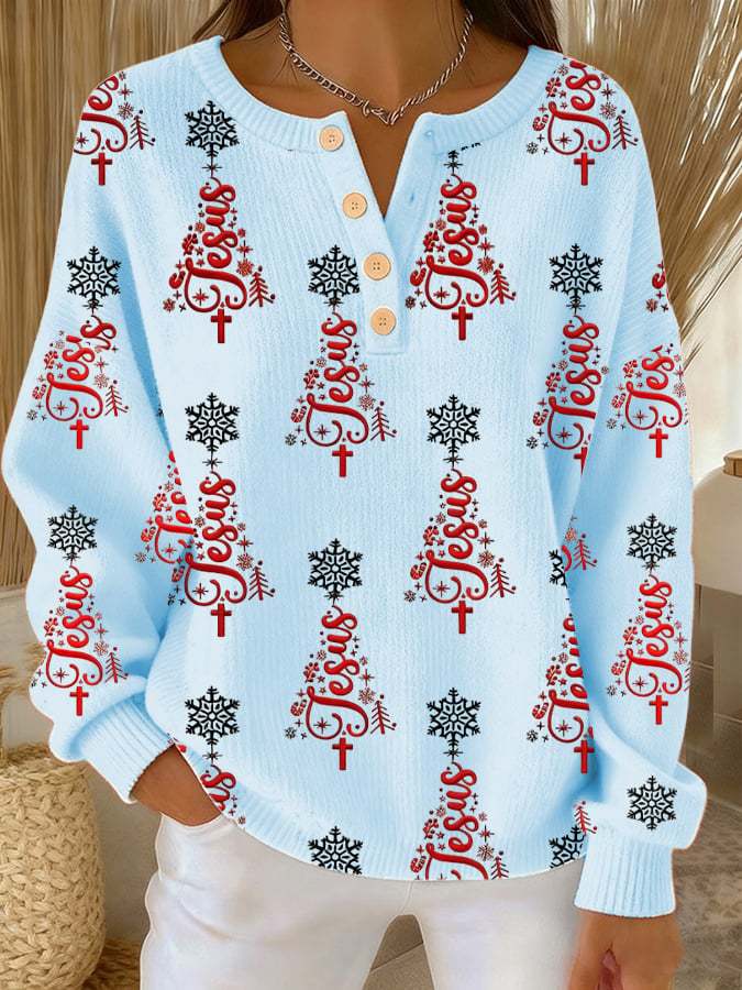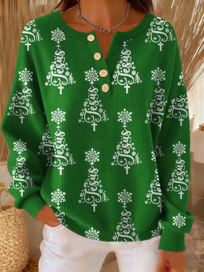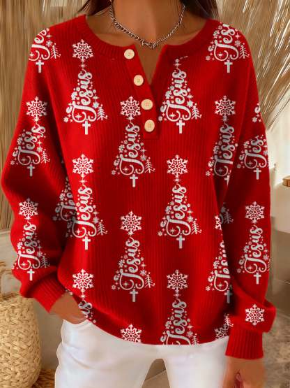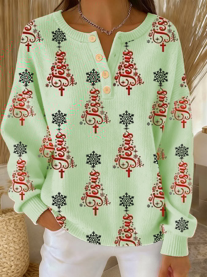 ✝️Women's Casual Christmas Faith Button Knit Top