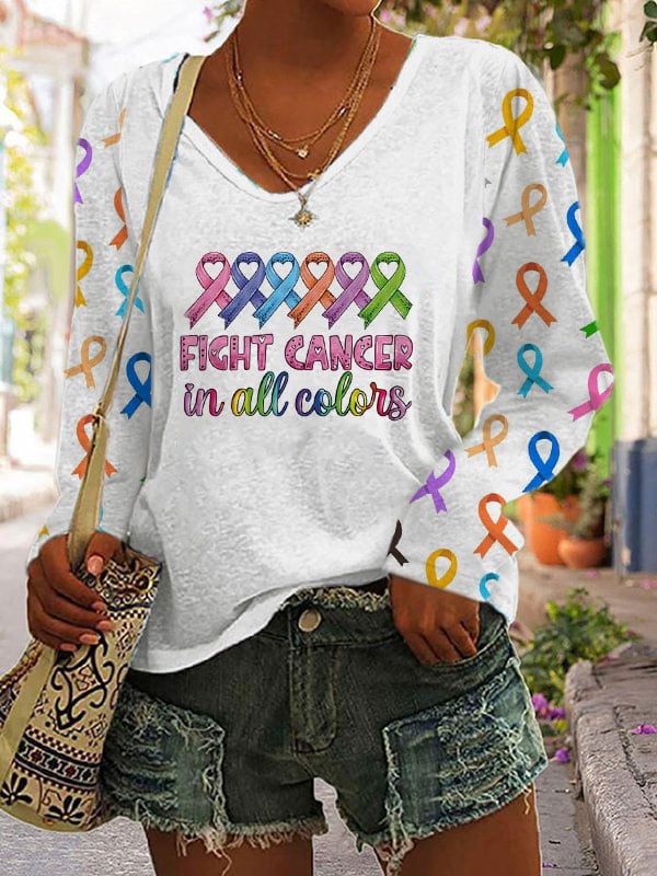 Women's Fight Cancer In All Colors V-neck Long Sleeve T-shirt