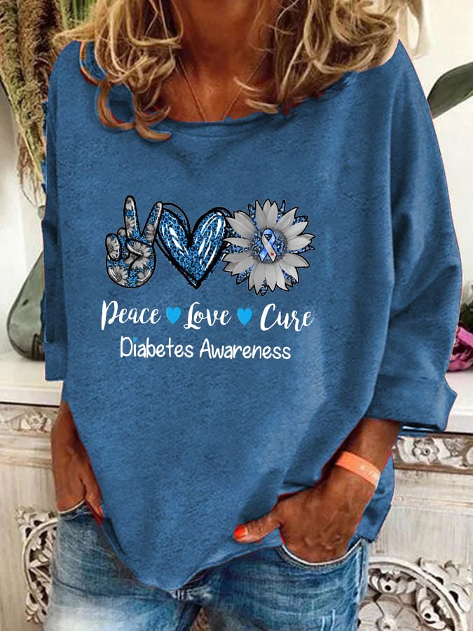 Women's Peace Love Cure Diabetes Awareness Print Long Sleeve T-Shirt