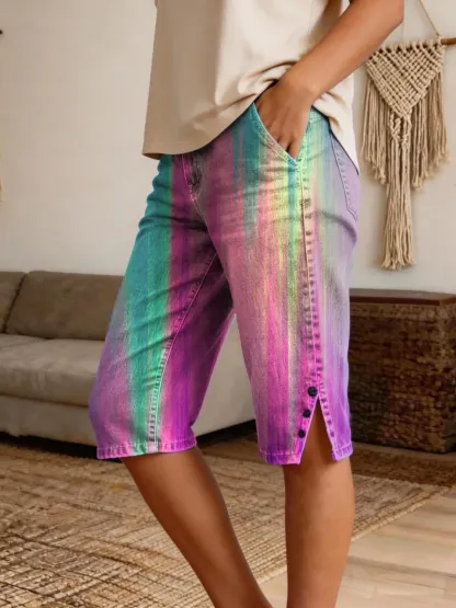 Women's Retro Oil Painting Tie-Dye Art Print Casual Denim Shorts