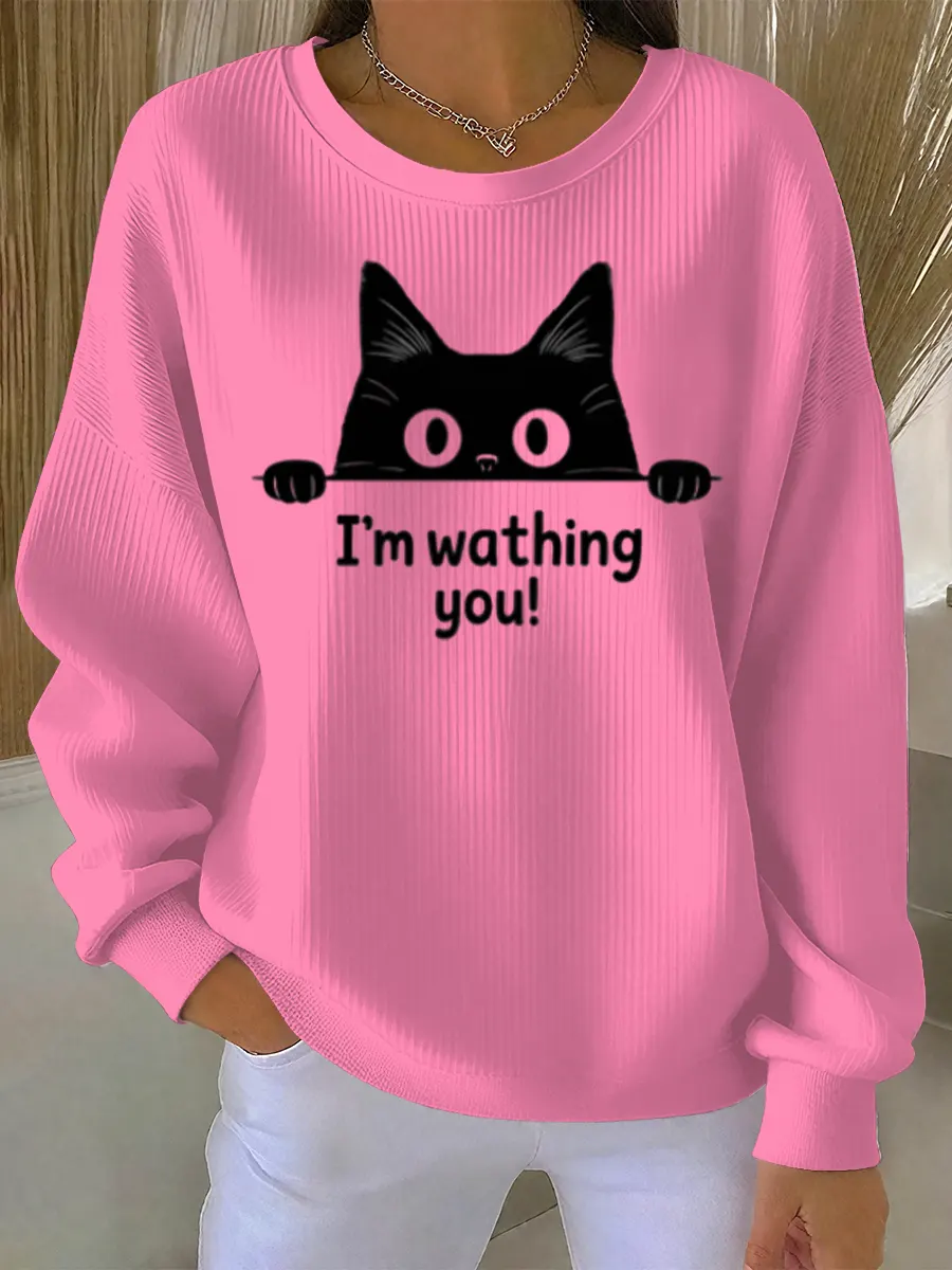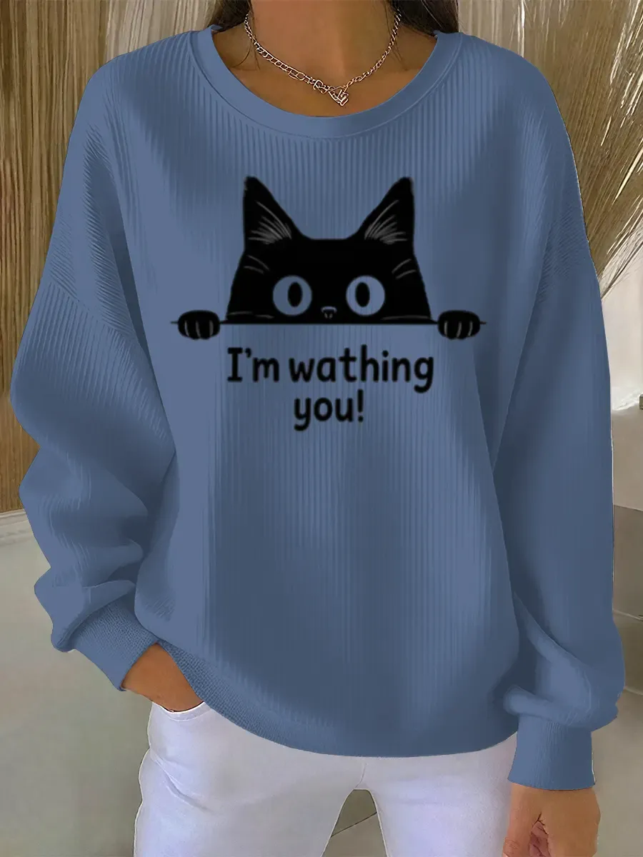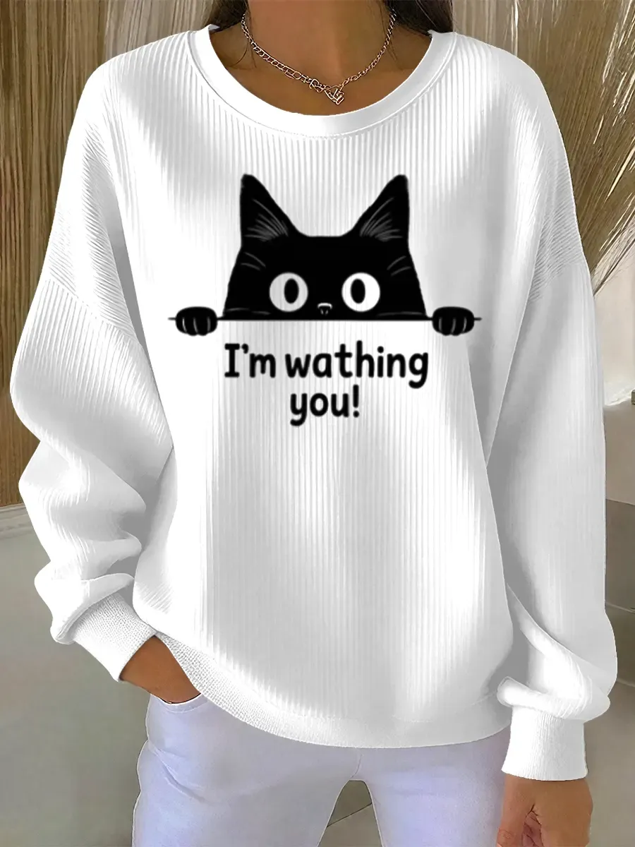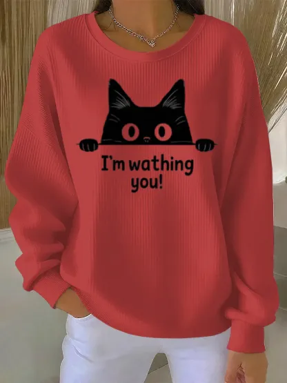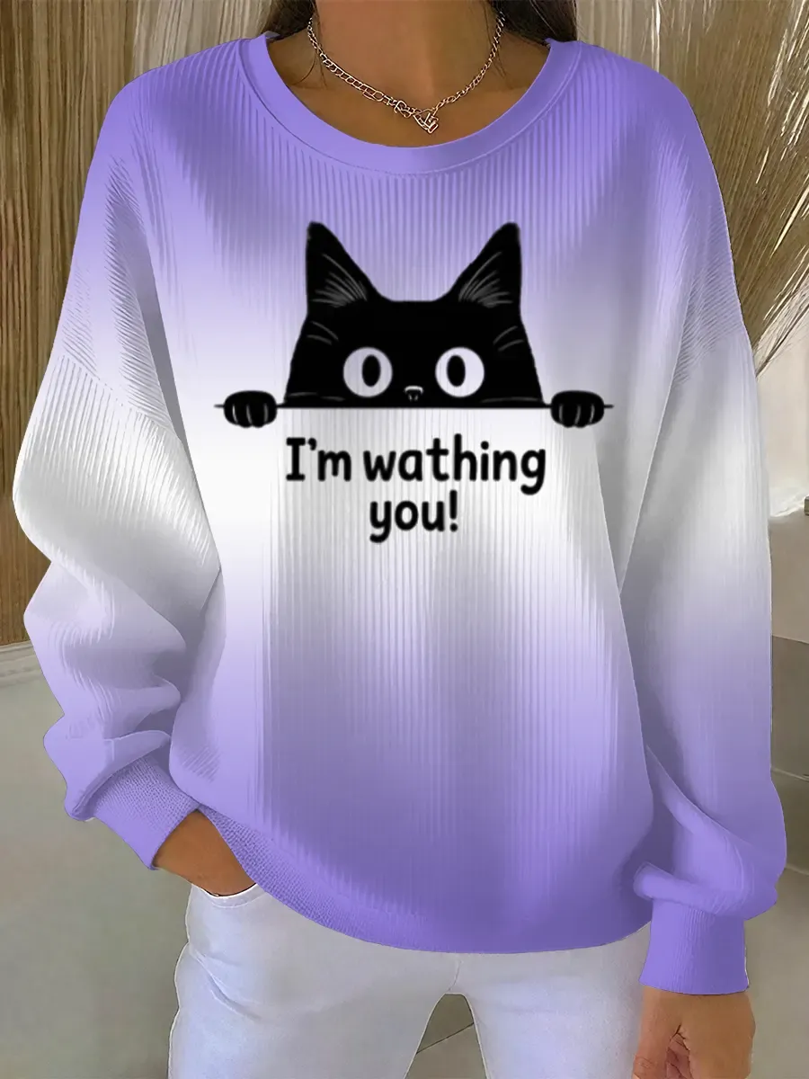 Funny Vintage Cat Art Print Casual Sweatshirt