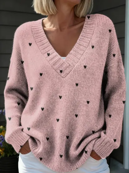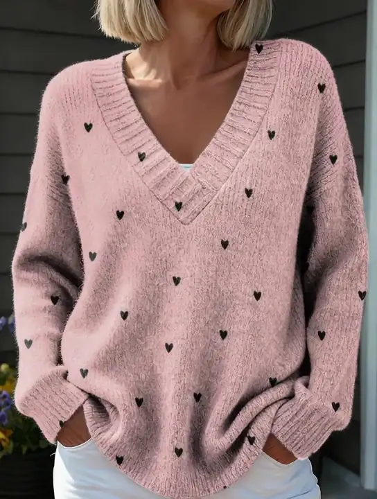 Love Pink Women‘s Print Knit V-neck Pullover Sweater