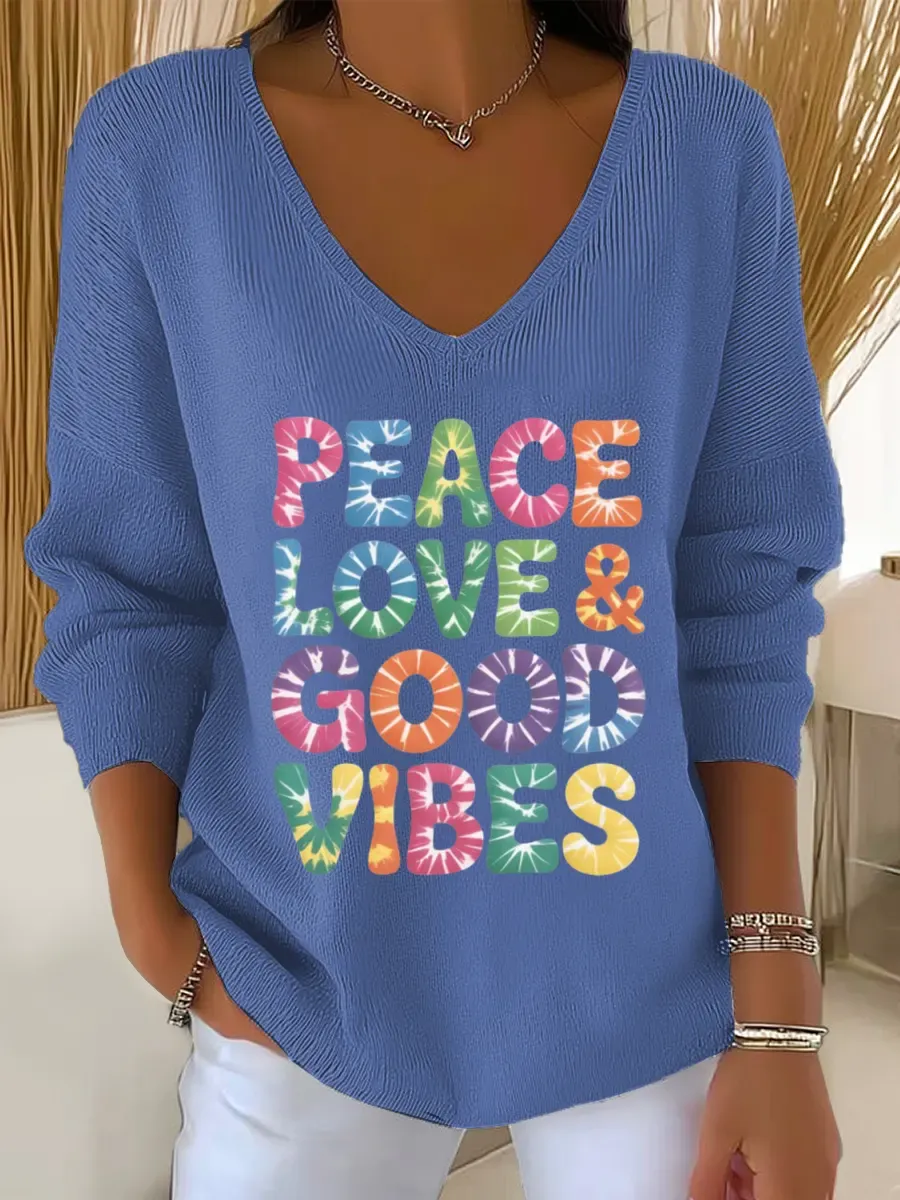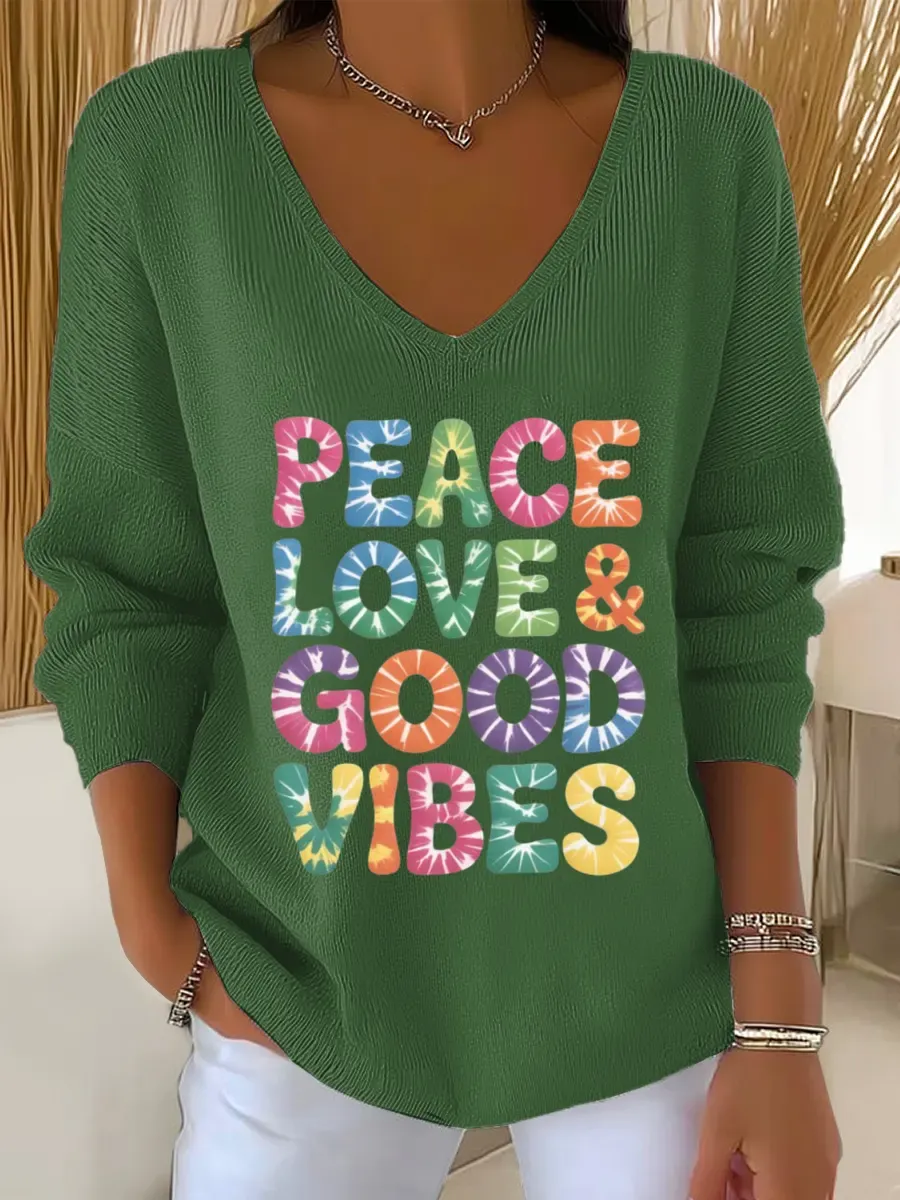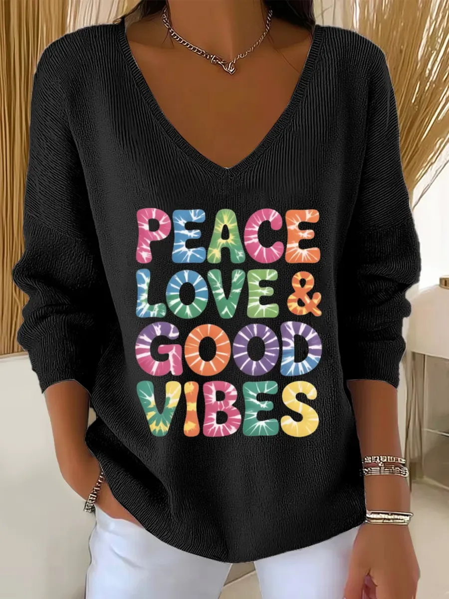 Peace And Love Vintage Art Print Casual Pullover Sweater