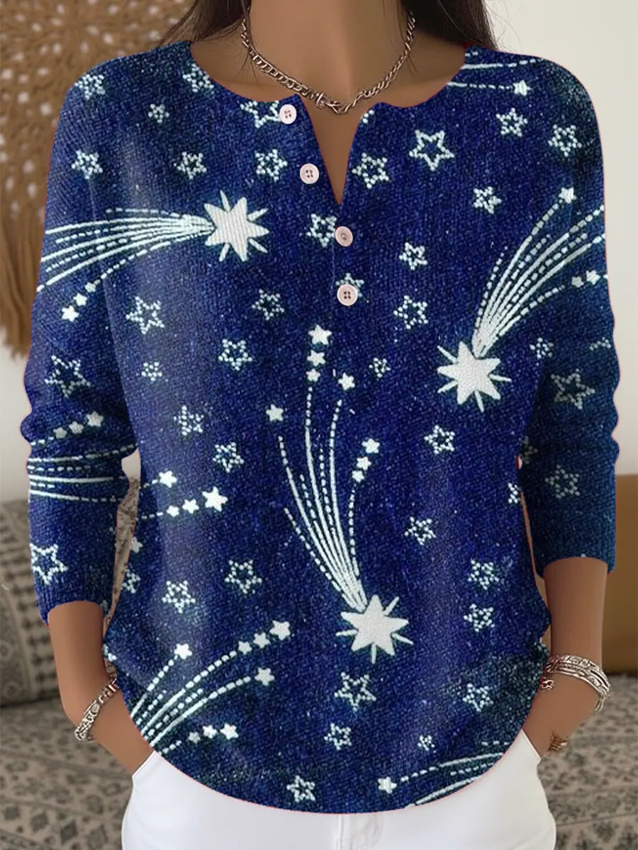 Vintage Shooting Star Art Print Buttoned Cardigan Sweater