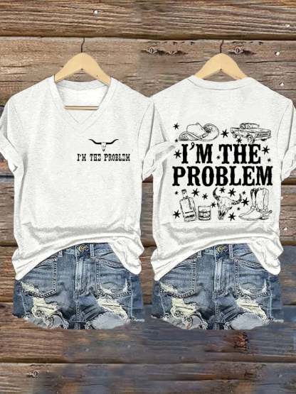 Women's If I'm The Problem Then You Might Be The Reason Print V-Neck T-Shirt
