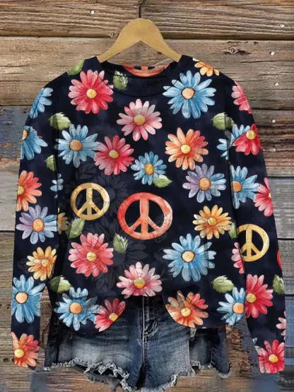 Women's Peace And Love Vintage Print Art Casual Sweatshirt