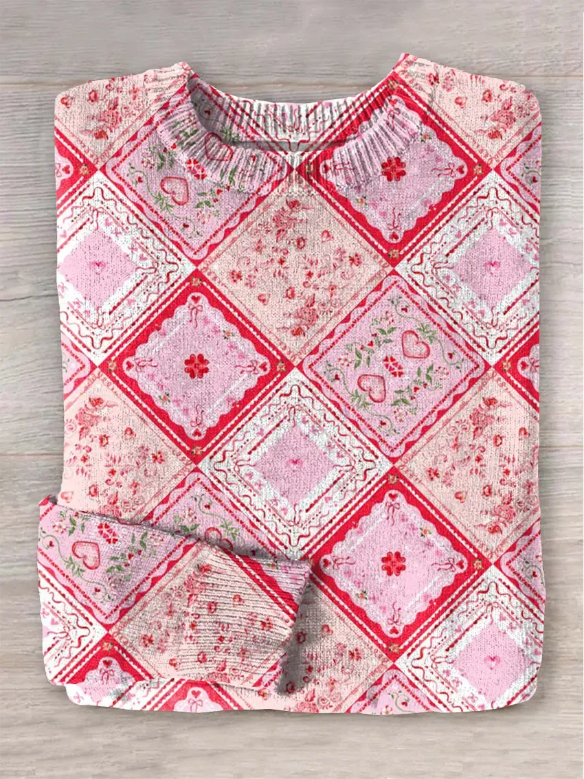 Women's Pink Art Breast Cancer Awareness Art Flora Print Knit Pullover Sweater
