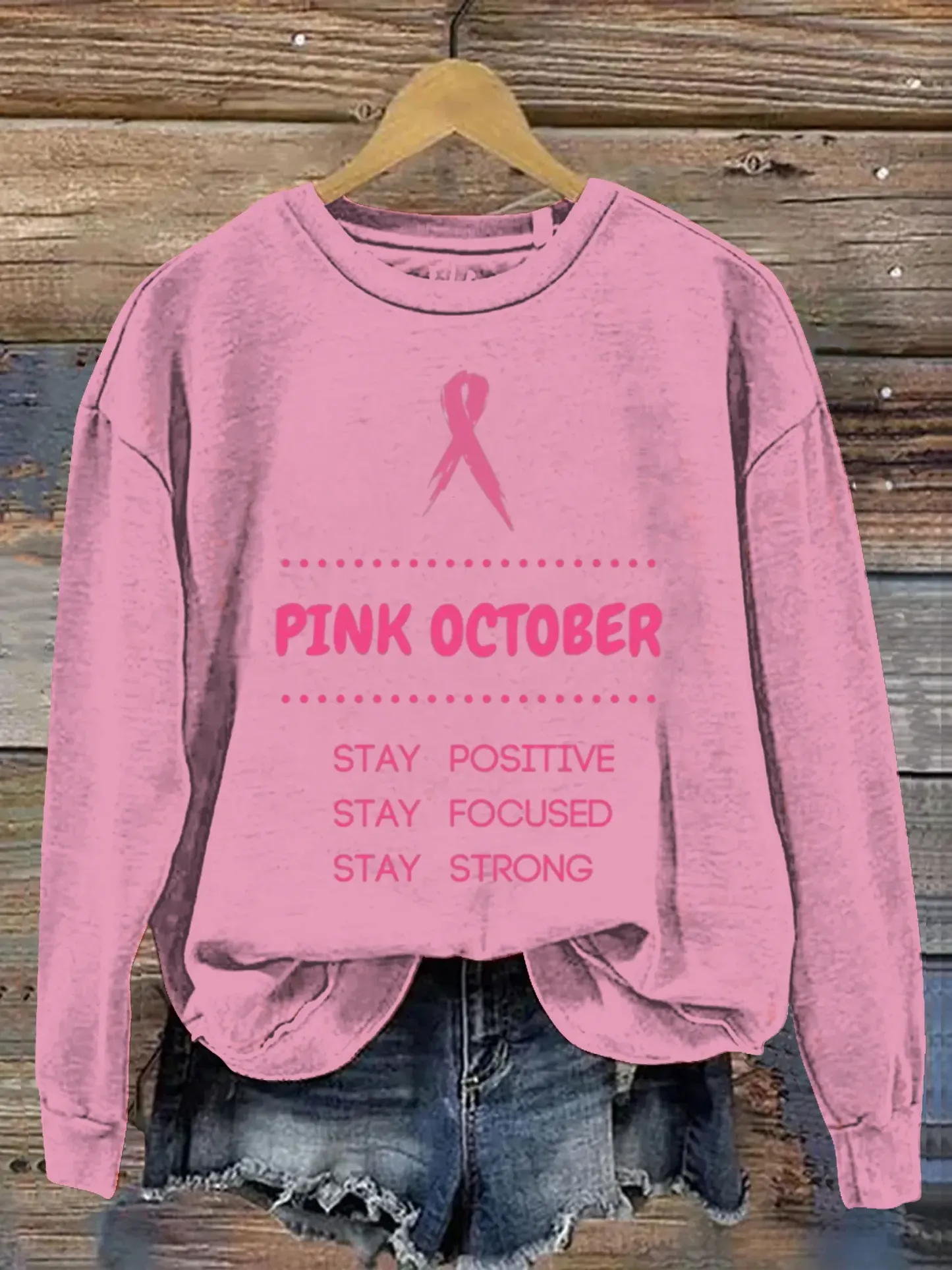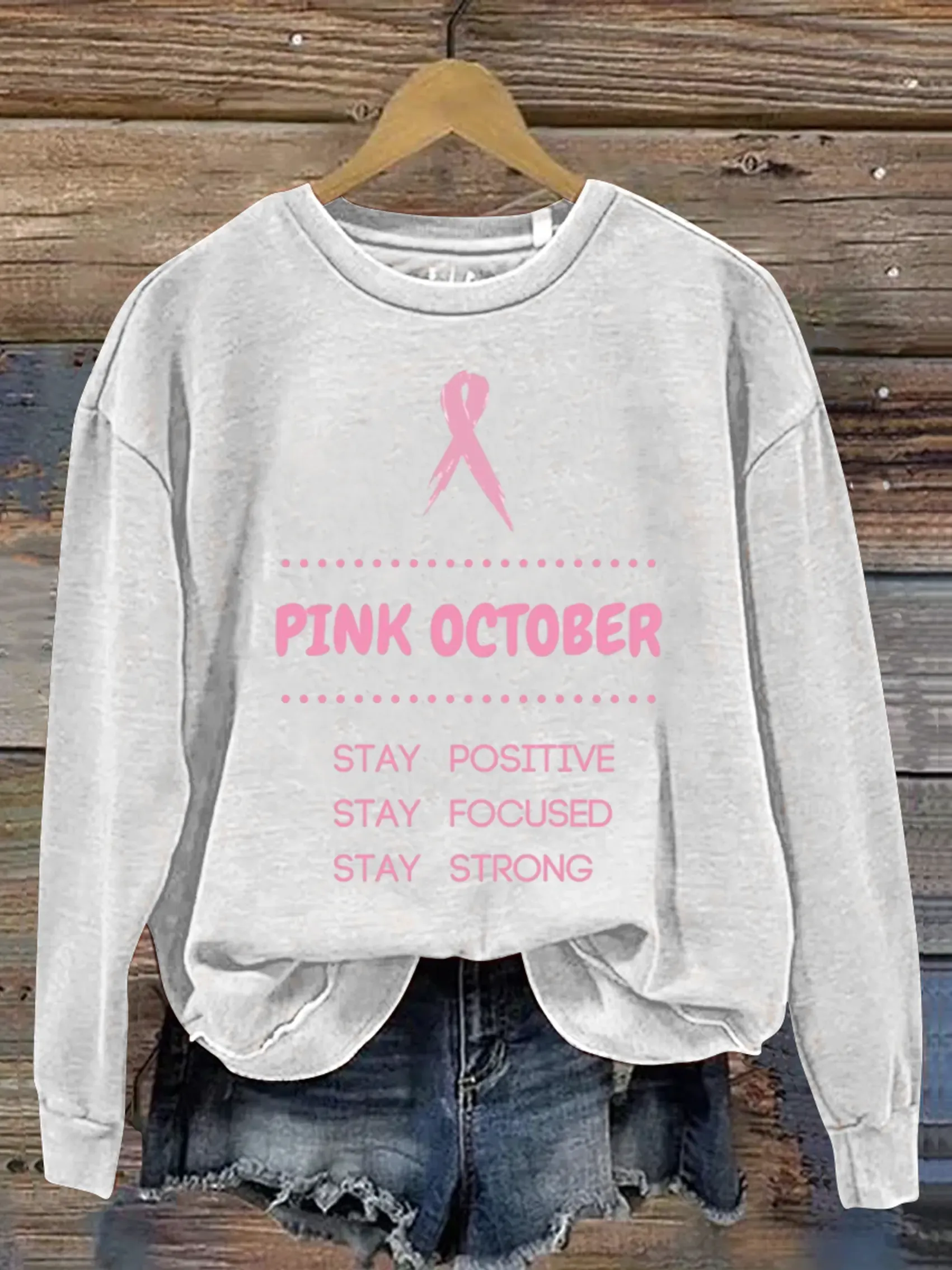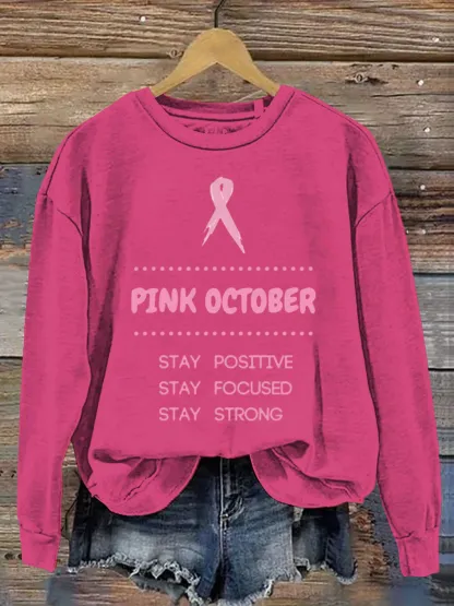 Women's Pink Art Breast Cancer Awareness Print Casual Sweatshirt