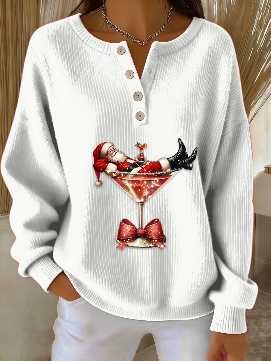 Women's Vintage Christmas Santa Claus Cocktail Print Long-sleeve Sweater
