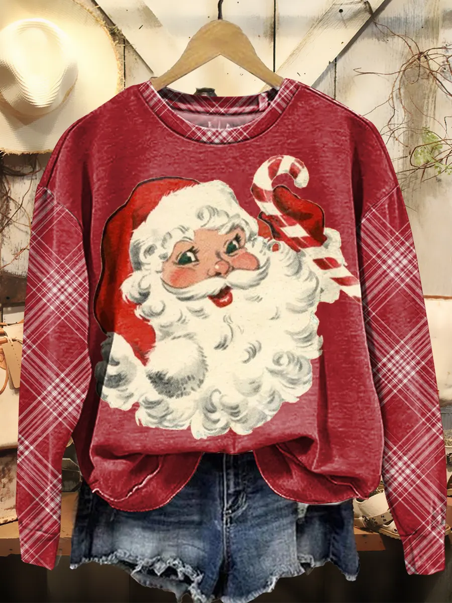 Christmas Santa Claus Check Pattern Vintage Art Print Sweatshirt